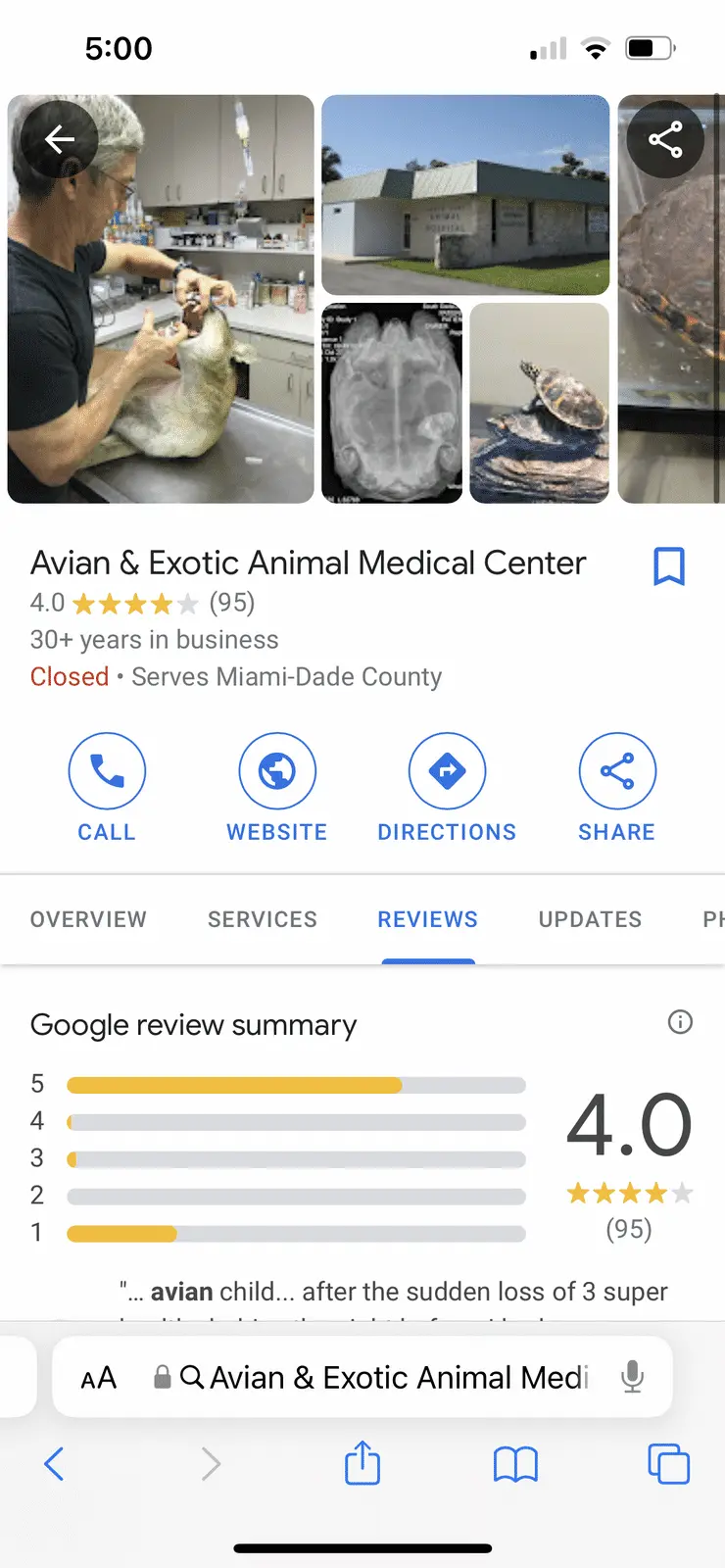 Thank you for the suggestion, unfortunately all of them of the ones you show me are to far for my mom to drive. I’m gonna see if I message some vets that are near me if they see parrots if not, I don’t know why there’s not many in south Florida, most of them are all up north, the closest one was Deerfield beach and that’s really up there. Me and my mom are like in Miami lakes.Here is a list which many have found helpful... good luck!