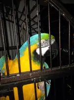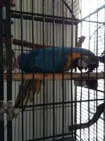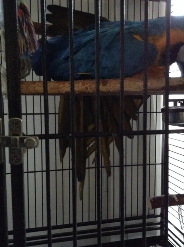 And right now, he's in his cage, clung to the bars, with the door closed. He has never had the door closed, unless in trouble.