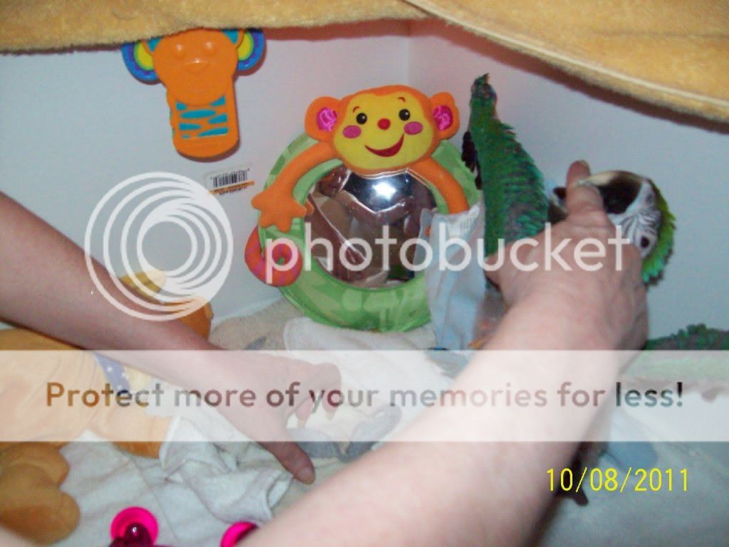 OMG..that bird is beautiful!! I would be cuddling him and singing to him and feeding him and cuddling him and then I would be cuddling him some more. I cannot resist baby parrots. What a good job you are doing with this baby!!