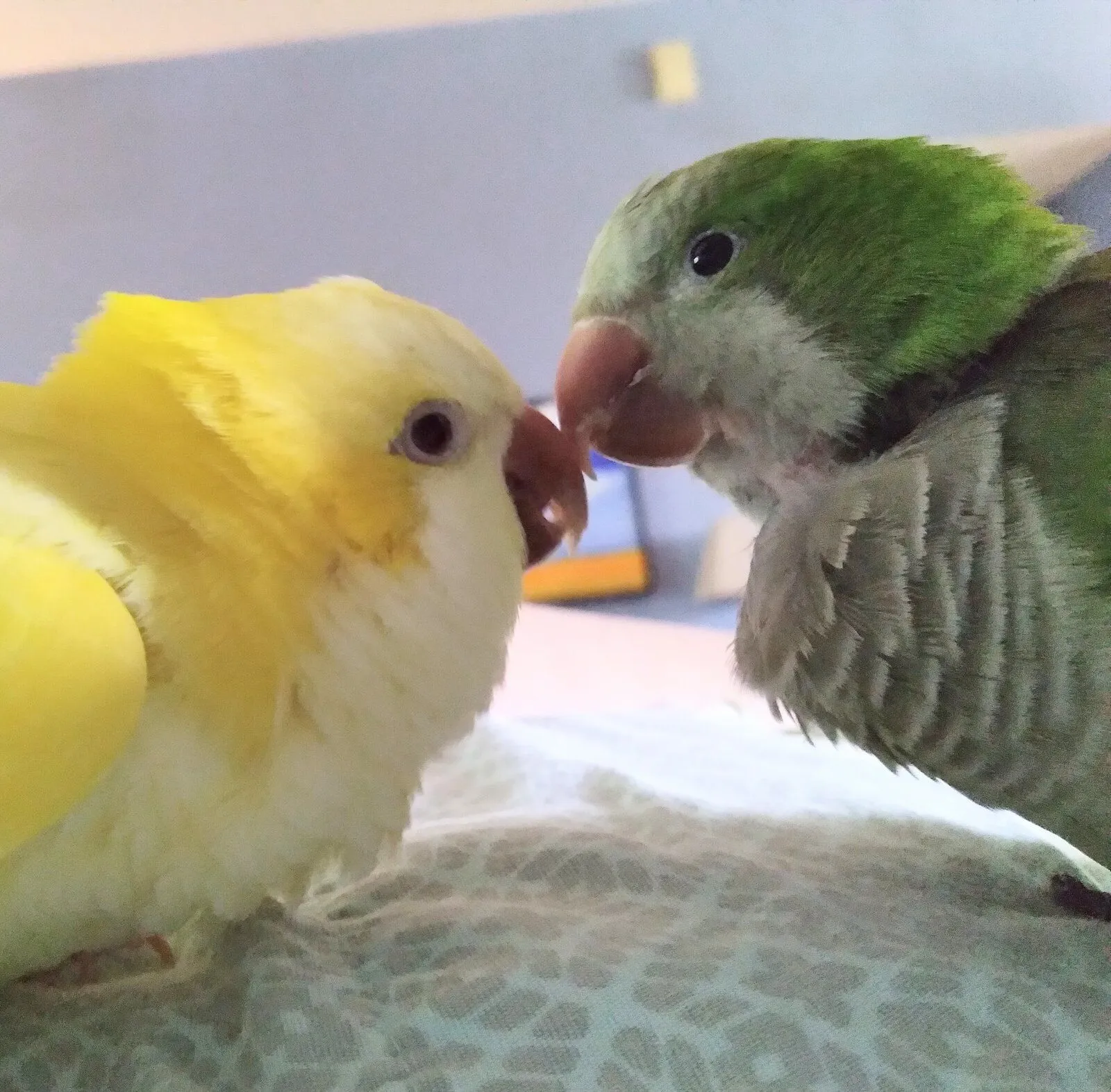 That reminds me of my Phoe and Jax. Jax wanted to be friends a long time before Phoe did, but they became so close after a few months. Jax still grieves for him, and will say his name over and over and look for him, even after all this time.Its amazing for Penny as well. It took over a year for Pikachu to win Penny's trust. Penny didn't know how to be a burd and had lived alone her first 10 plus years of life. So it has been really healing for Penny.