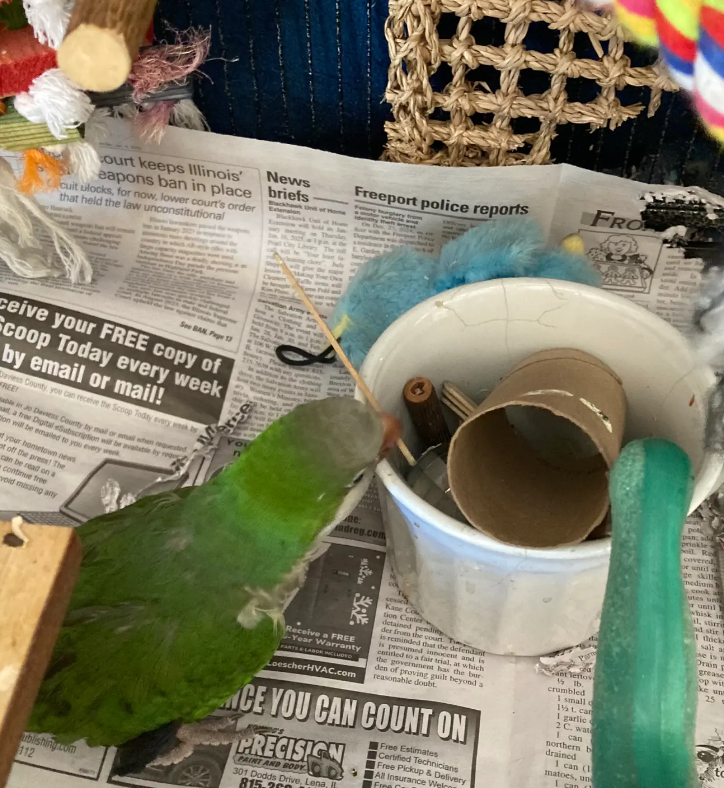 - Fang ({ab}normal grey cockatiel), Valentino (budgie), Jem (cinnamon cockatiel), Lovejoy(varied lorikeet), Peach (princess parrot)