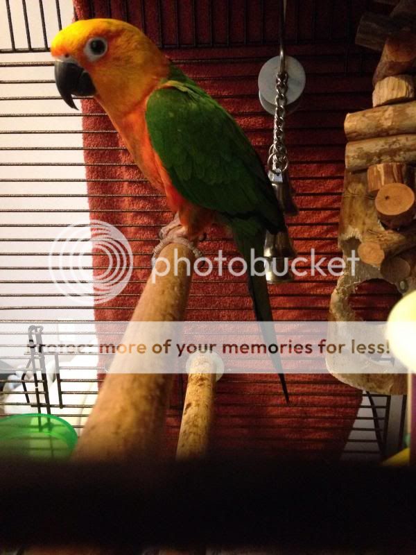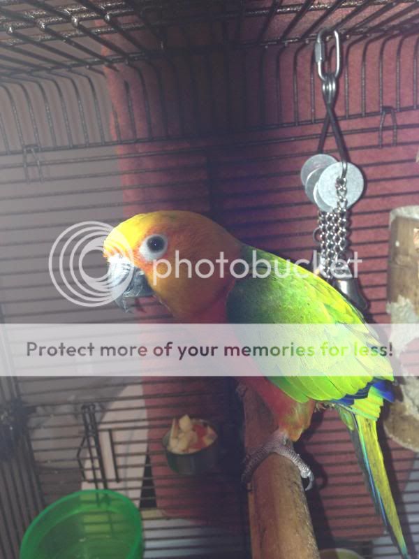 Victoria showed me the pic and I said sun cause he looks just like Loki... but then she said 8 years old and then it was, oh wait green wings A jenday adult does look alot like a baby sun... but the sun would be mostly yellow wings if he was really a sun and 8 years old...