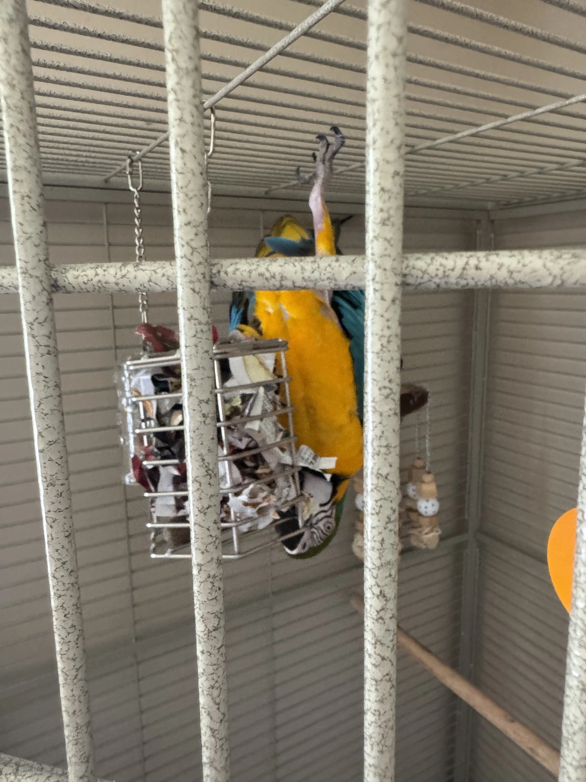 Blue wants to enter the Olympics. He’s been dangling from a few claws hanging upside down right after a nail trim. I’ve been worried but so far he hasn’t fell.