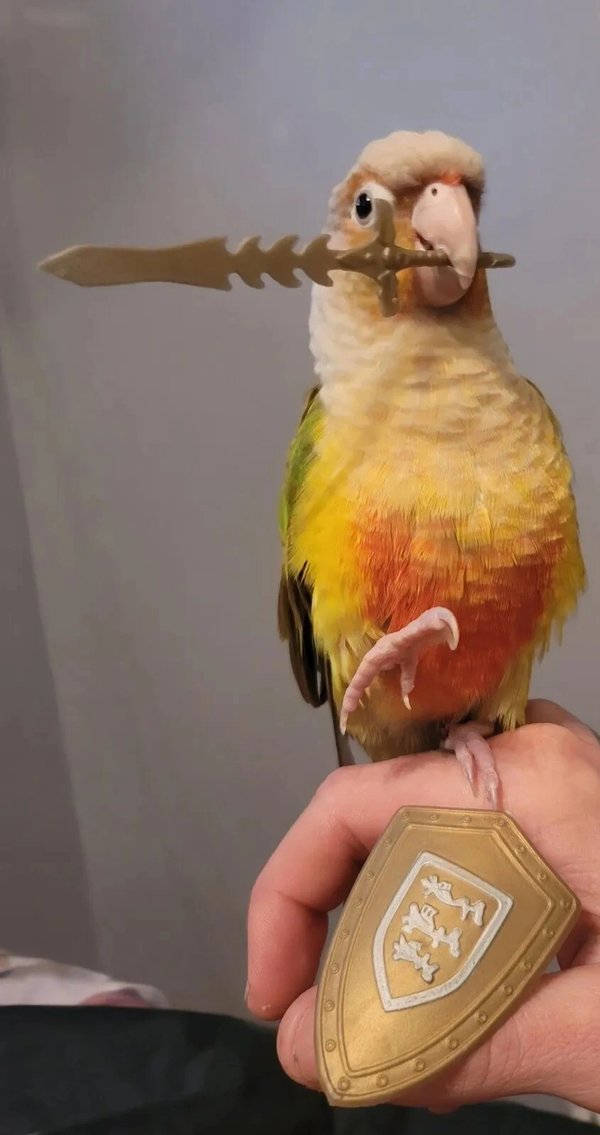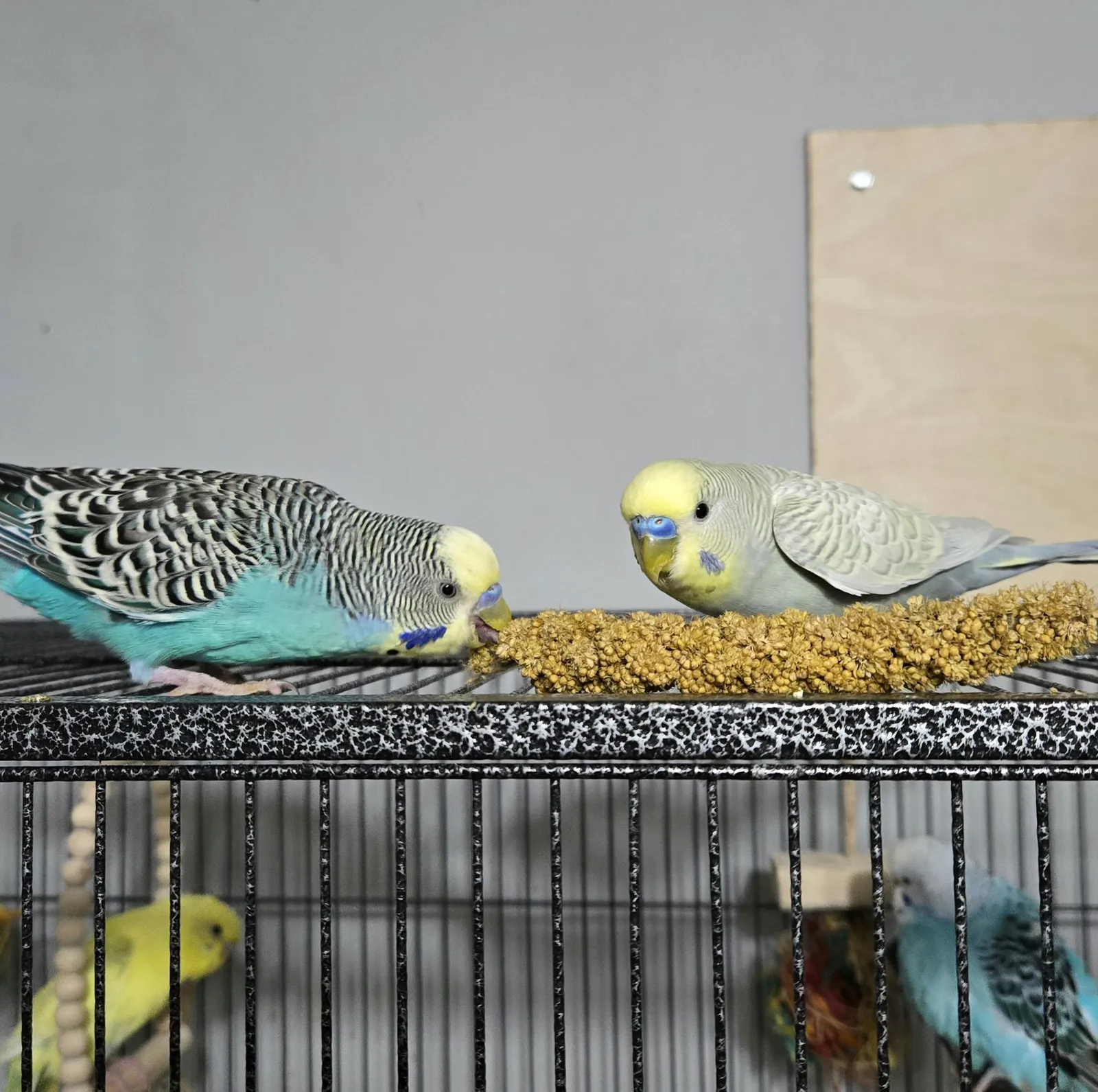 - Fang ({ab}normal grey cockatiel), Valentino (budgie), Jem (cinnamon cockatiel), Lovejoy(varied lorikeet), Peach (princess parrot)