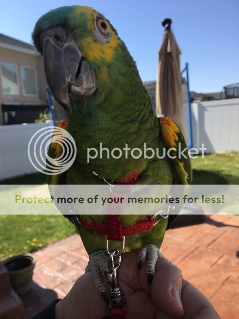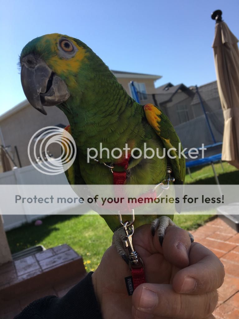 Okay so I made these 2 videos this morning of Finley and Ollie. I did my "Just put the harness on" method without any kind of grace period for them to get used to it or step in it themselves ect. Yes they are not in love with it but to be fair it's Finley's second time ever wearing a harness! And Ollie's 2nd time this summer, as the summer goes on he doesn't even bite the harness while I'm putting bit on. Now keep.in mind your bird must trust you fully to do this or you might end up hurting your bird or you badly. Never ever use harsh force or do anything that could hurt your bird. You may not be able to tell but I'm actually being very gentle and only slightly holding their heads to get them through the hole of the harness.