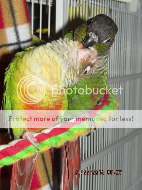 last night I was tucking the birds into bed. Kahlua & Flare always perch on the boinger before going in their cage.