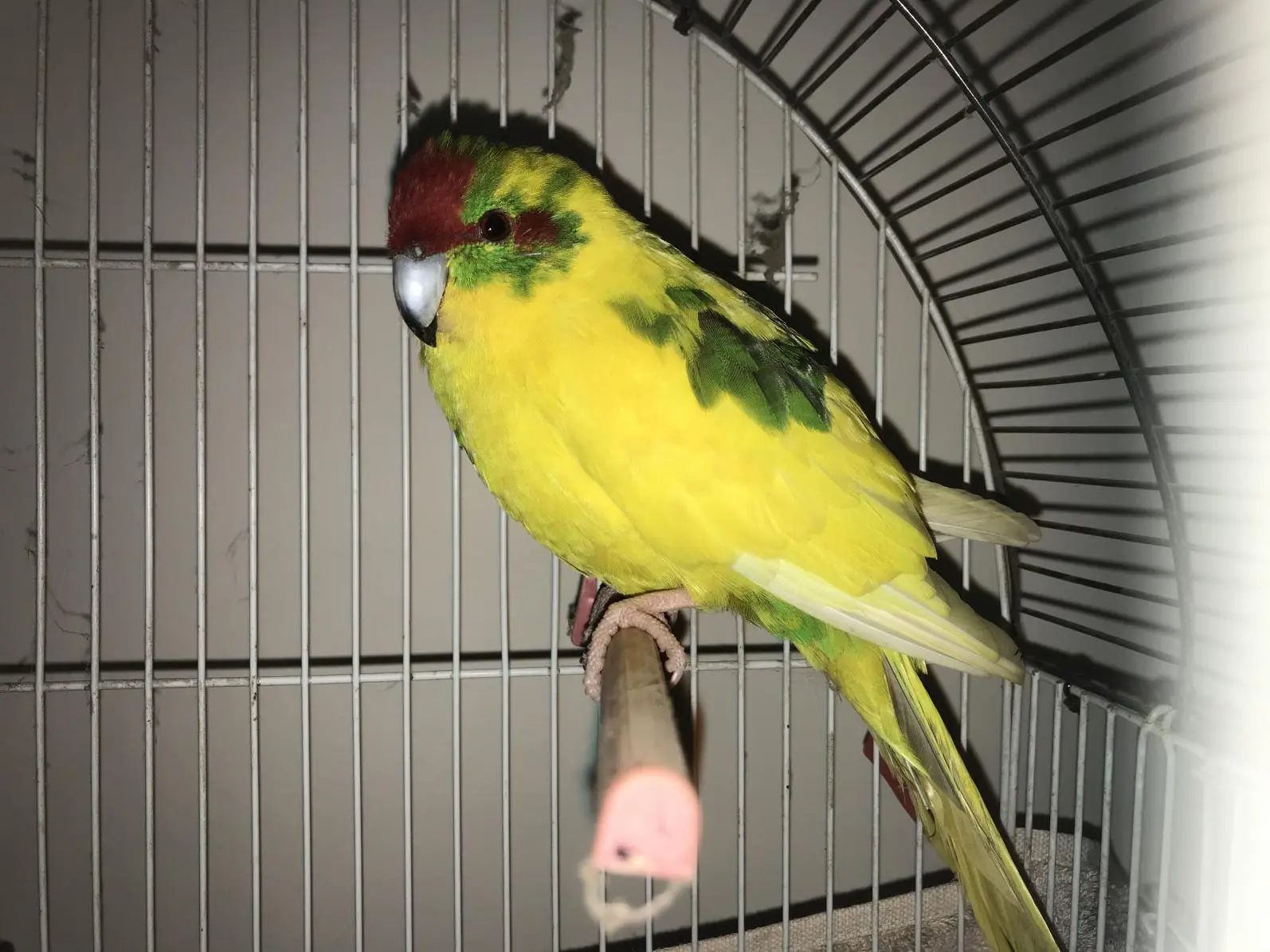 18 month old Male Red Fronted Kakariki with Lutino Mutation. Pied. Great pet & successful breeder, great with strangers doesn’t bite.