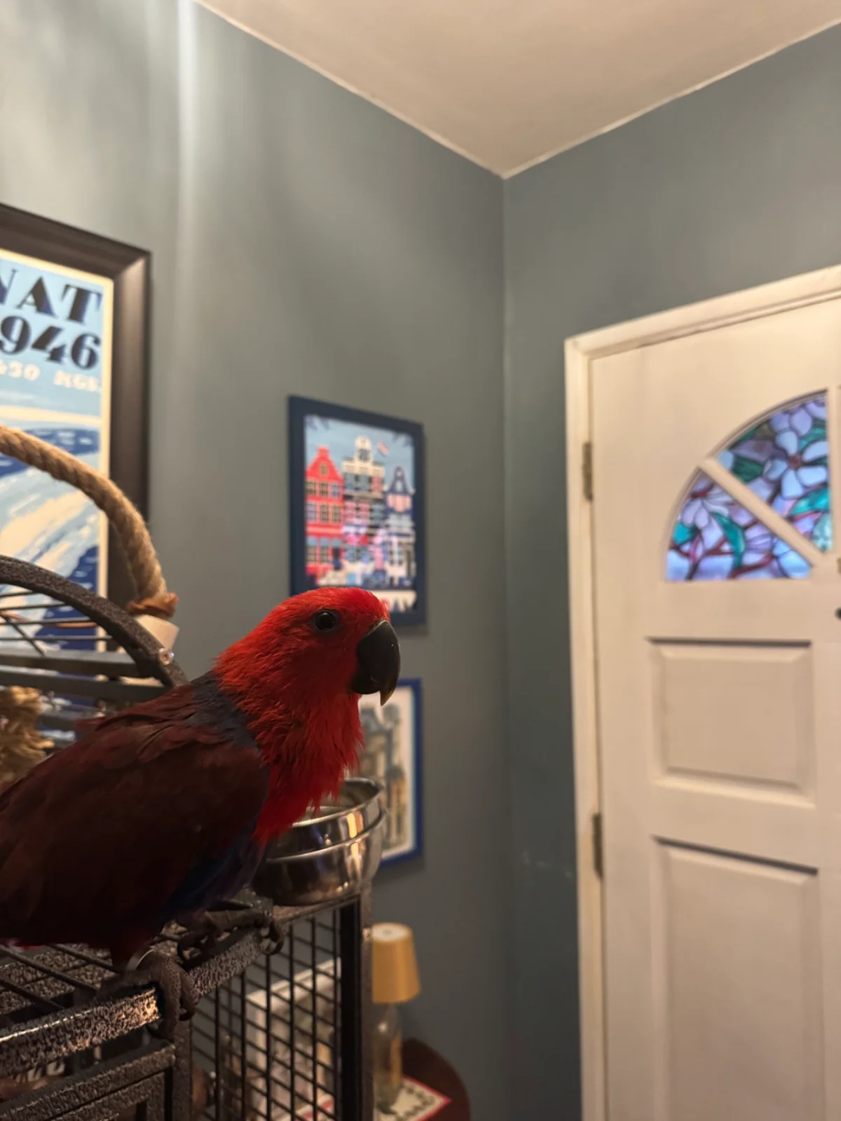 Our lady is pretty nippy, so we’ve been trying to give her space, and just spend time in the room with her as opposed to any up-close interactions. She’s also been shaking a lot; we’ve made sure the temperature in the room is the appropriate range for an Ekkie, so we’re thinking maybe it’s nerves? She starts shaking when someone approaches her, from what we’ve seen thus far. But we’re going to take her to an avian vet soon for a check up.