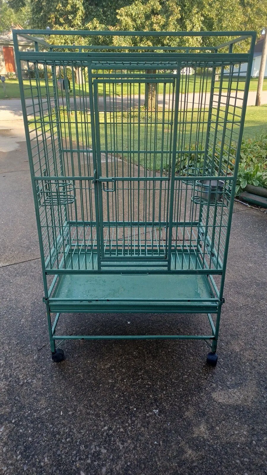 I have a large bird cage for sale 56 1/2 " Hight x 32 " Wide x 23 " Deep it is in good Shape asking 300.00 Just power washed it; it is is ready to go. I am located in NE Ohio