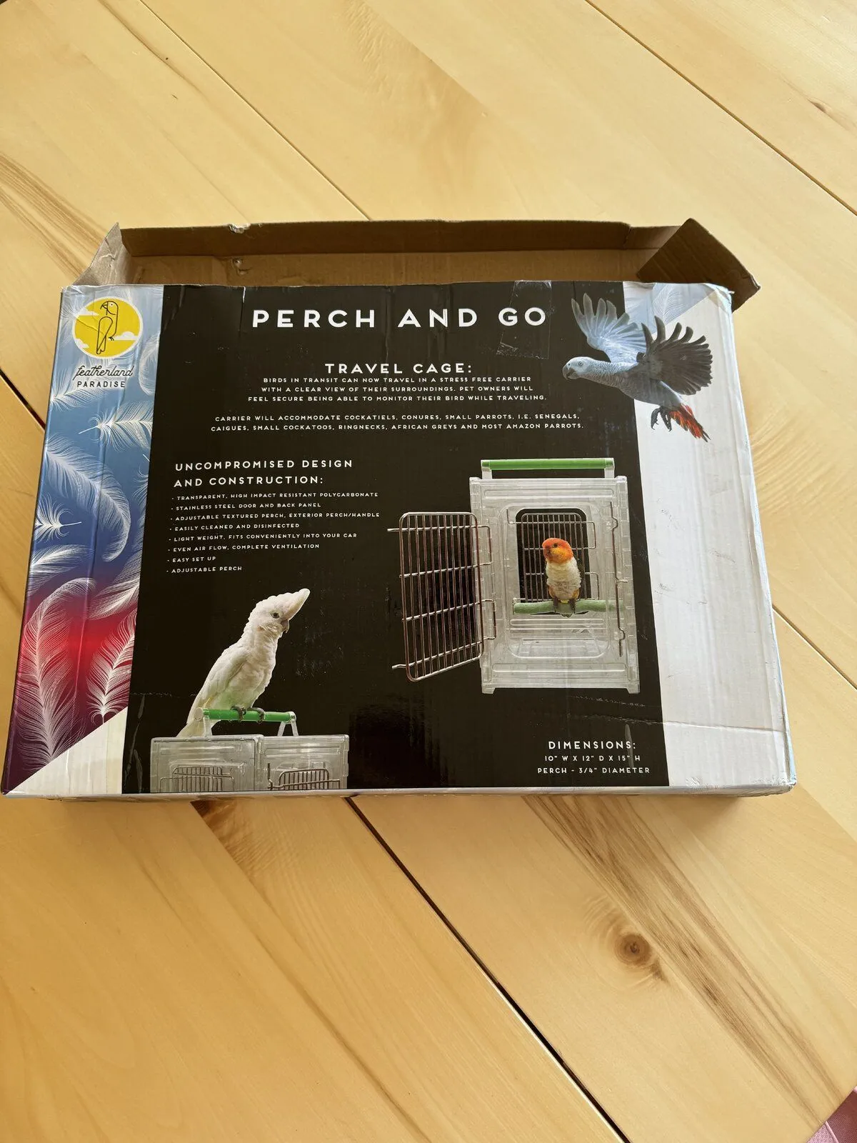 I had to purchase Nico a new travel carrier/cage. Pictures will be below. Soft sided ones Nico learned to unzip, or he destroys them. I bought a cheap cockatiel cage for travel Nico also learned to get out of that one, and the bars were easily bent. Now I’ve purchased this plexiglass, stainless steel one that’s in the pictures below. I can’t find anything out there for larger parrots.