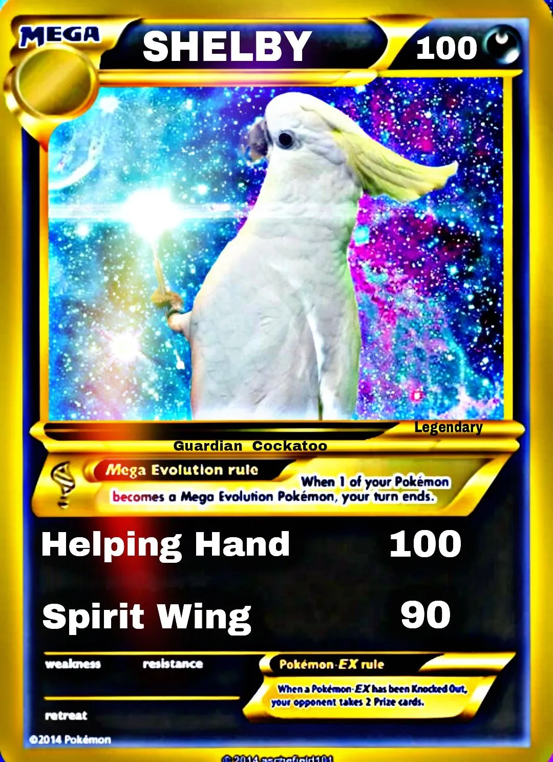 lol,...fantastic job !!! I'll show it to Shelby in Heaven tonight !This pokemon of legend is the tell of a beautiful spirit that heals and, guides all other pokemon keeping them safe. Psychic type with Mega Evolution. @Patty550