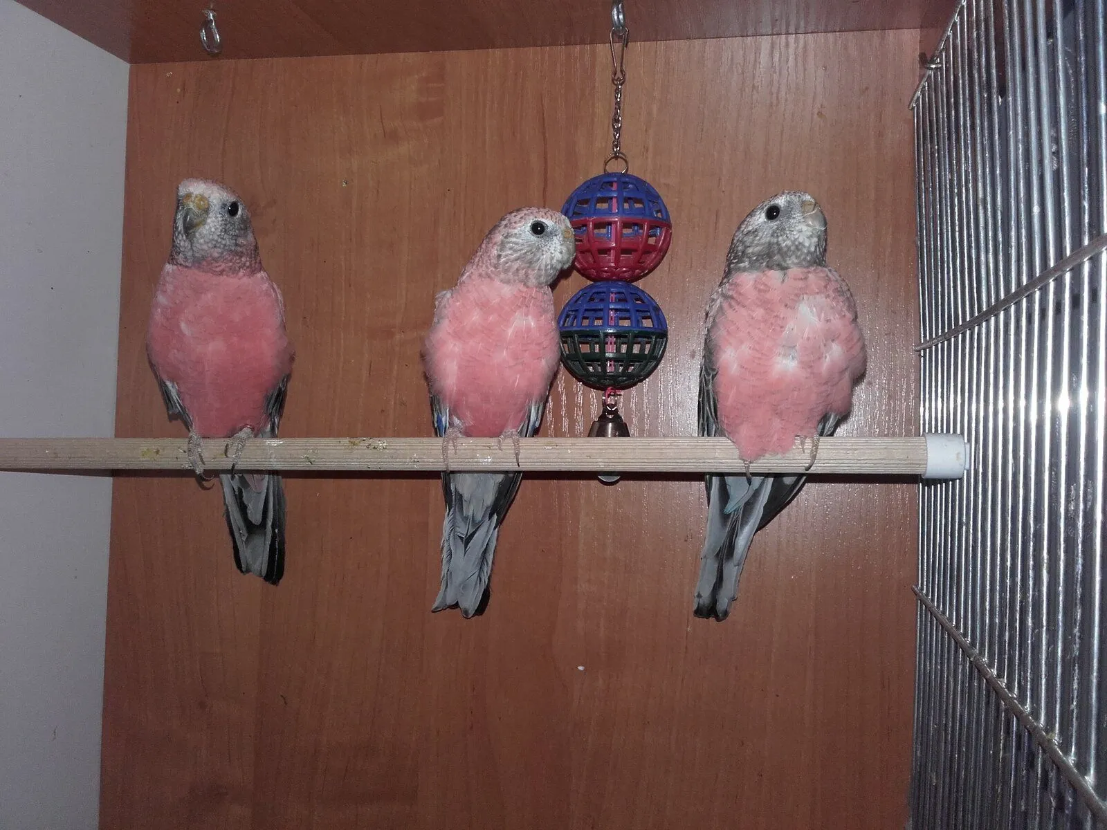 (note: it's an old photo, so ignore the bad perch because now they have different cage equipment. I chose this pic because I don't have any current pics of these 3 together - just separately.)