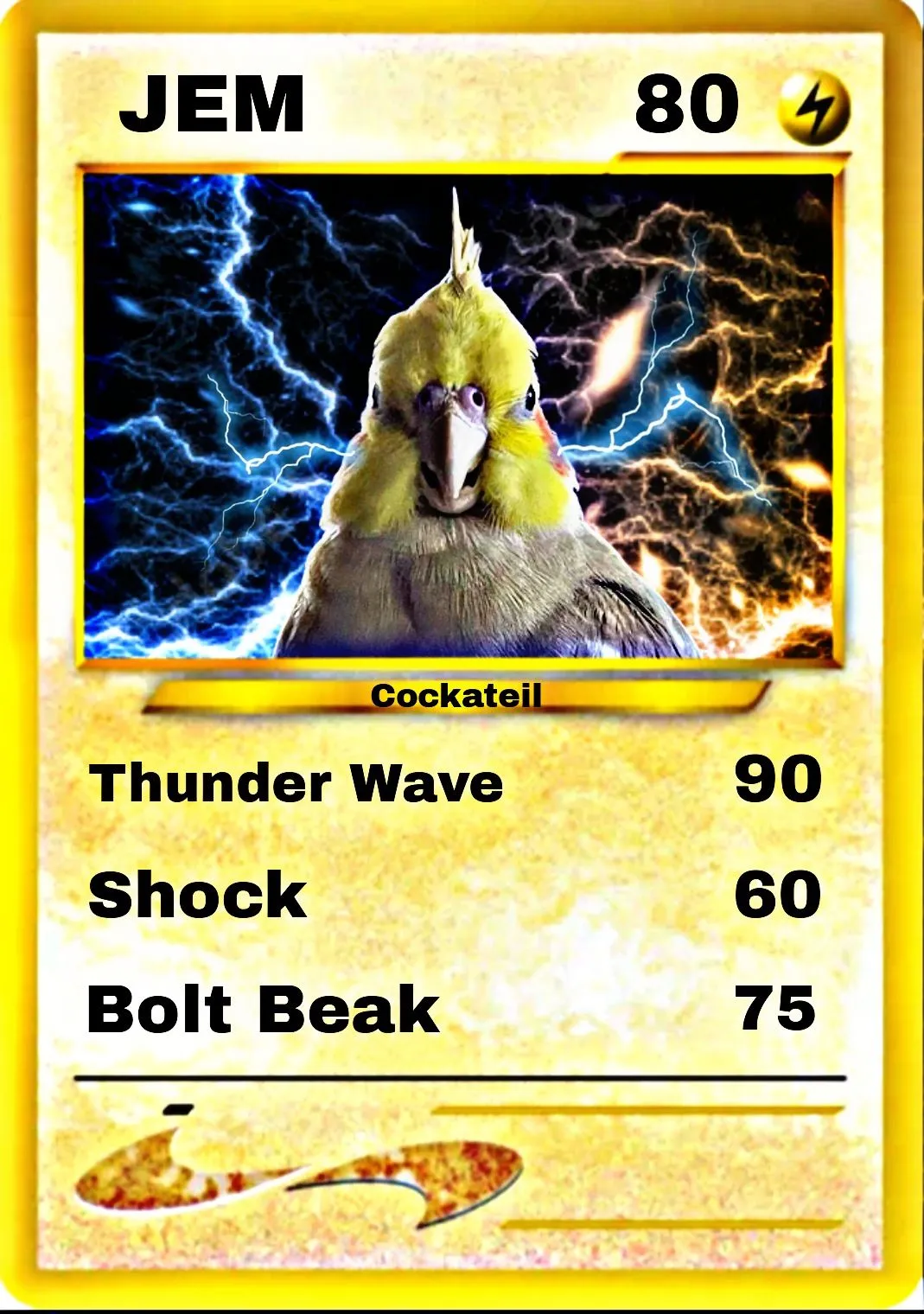 Oh of COURSE, the red cheeks ARE just like Pikachu, I totally missed that!! Very clever, thank you @TeekoGreenCheek, I love this one too!!This bird type electric Pokemon uses his red cheeks to produce volts. Very similar to Pikachu. @LaManuka View attachment 55509