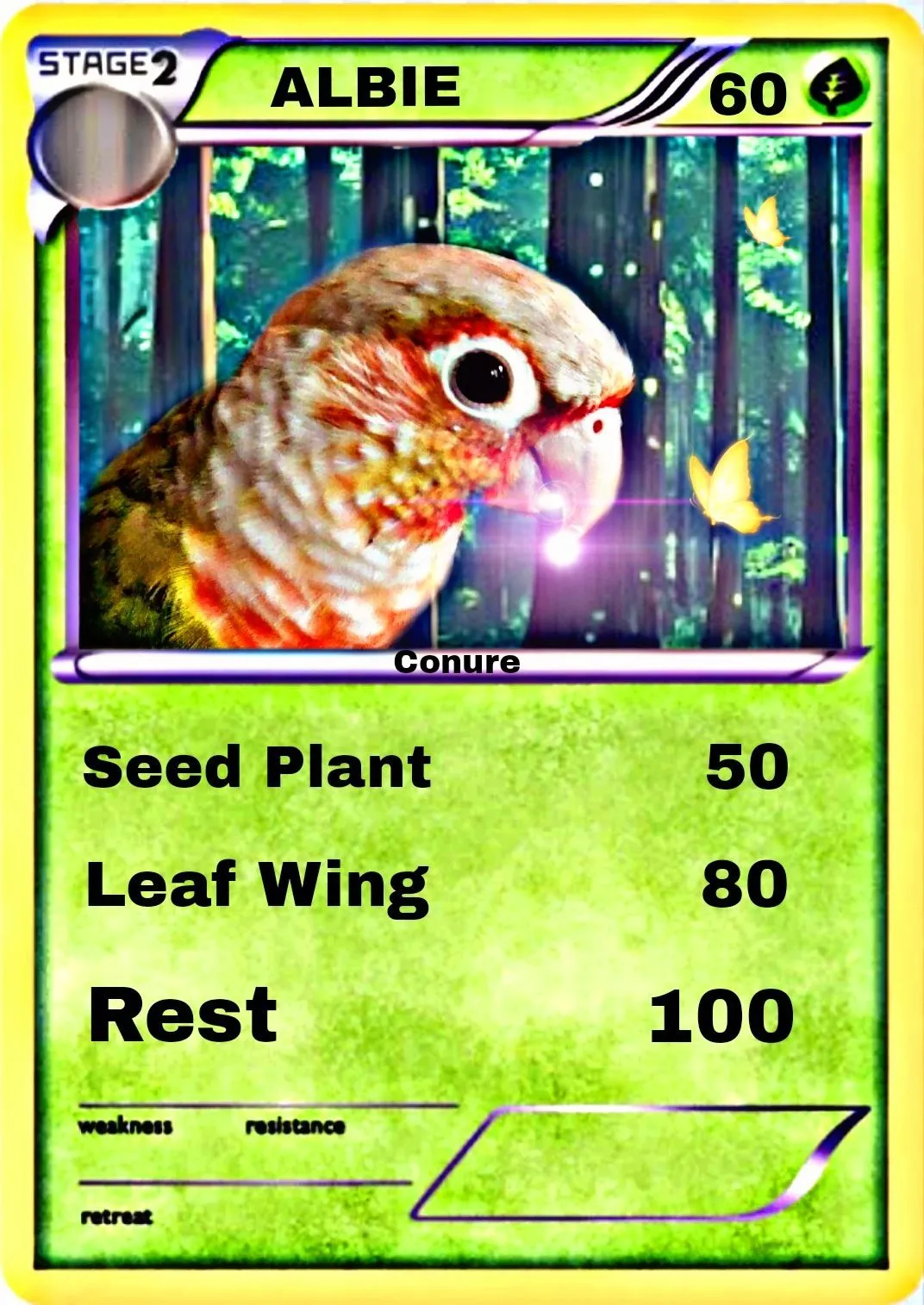 Awesome glad you like it!!Oh you have nailed Val completely, @TeekoGreenCheek, he IS a little psychic!! He can tell when I'm going out and therefore need to cage him, he runs a mile and is impossible to catch!! Thank you so much, I love all the cards you've done for me!![]()