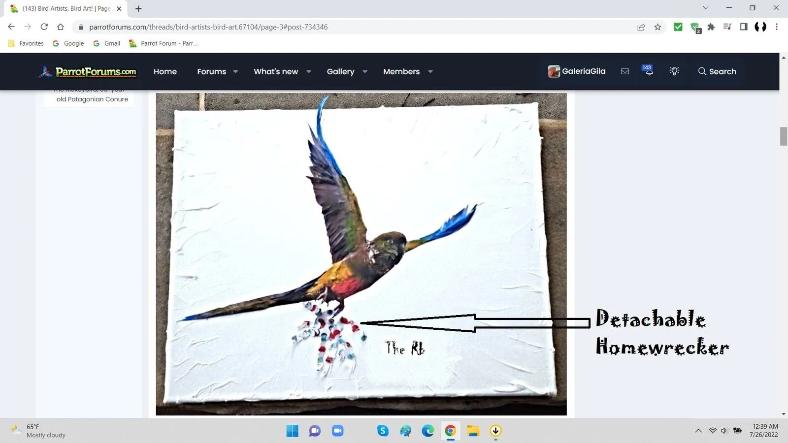 The OGs know who I’m talking about. Gail is the guardian of the Rickeybird, immortalized in his own thread. That thread has been the source of more laughter and wit than seems humanly possible. Gail really started something great! It occurs to me that we could pay her back in poem and song. So, write something! This means YOU! Write something now! Write a poem or story or song, flex your Photoshop Fu, draw a picture, share a fun memory. Let’s give the RB some competition for her attention!