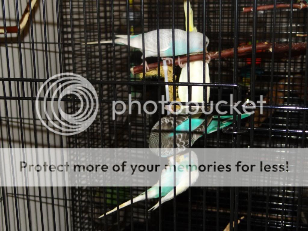 A string of budgies eating millet for the first time