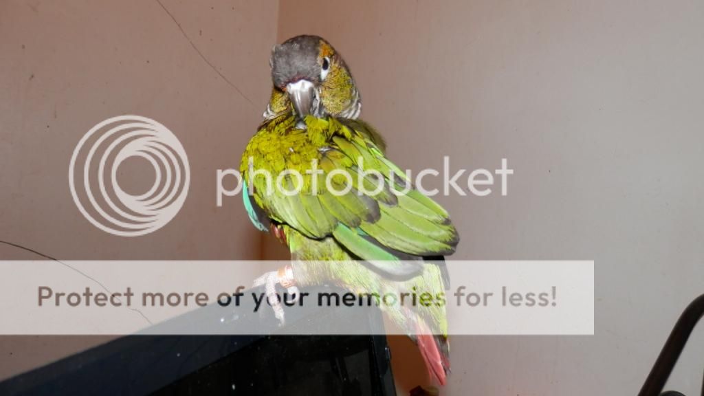 I had another Blue Crowned Conure once and it tried to attack Erik.