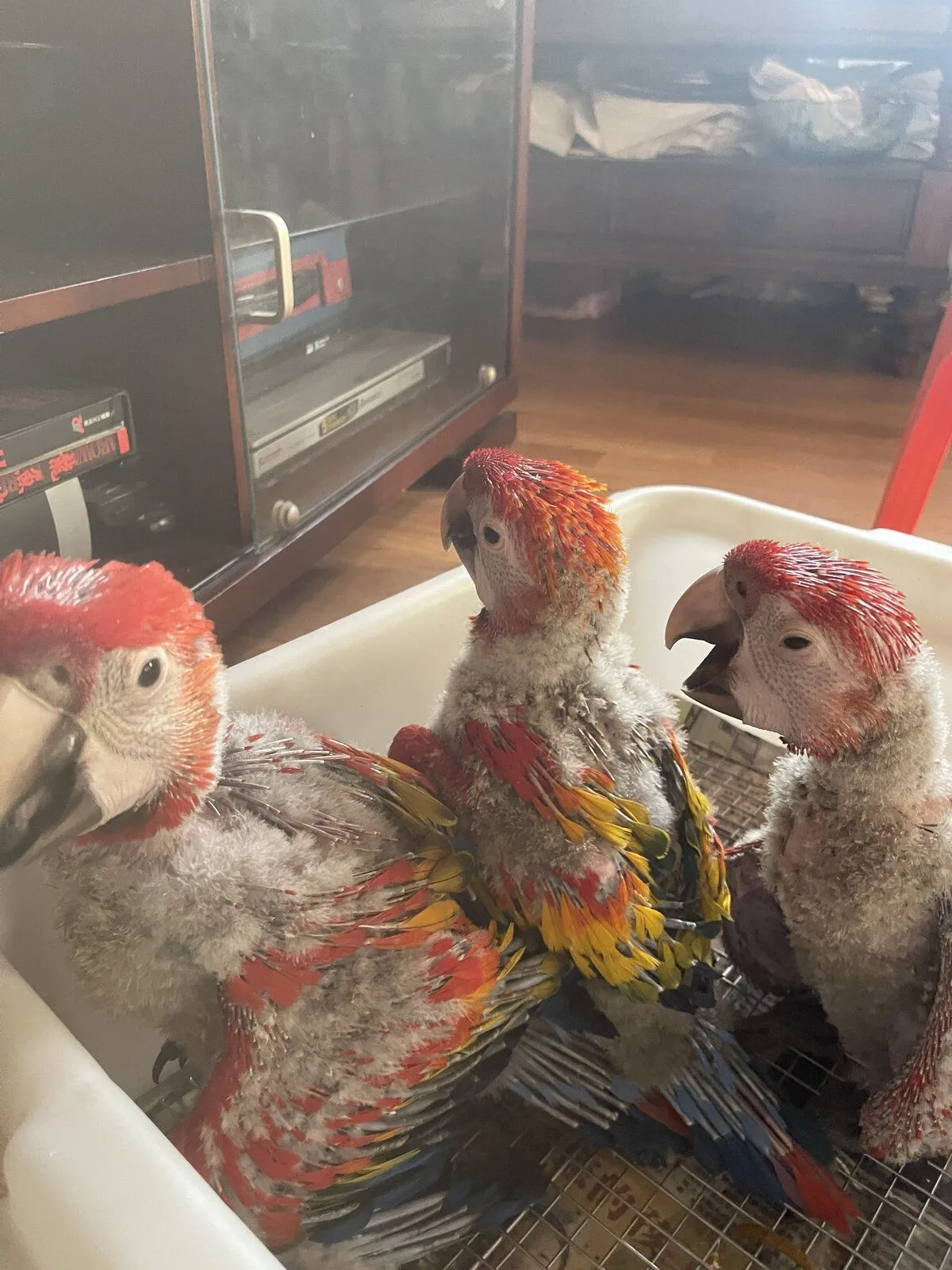I currently have 3 baby scarlet macaws and thinking about keeping some while trying to sell some to try to build up a savings for a Hyacinth breeding pair.