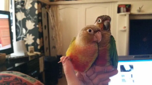 - I have a yellow sided green cheek Conure named Charlie and Pineapple Conure named Lola.