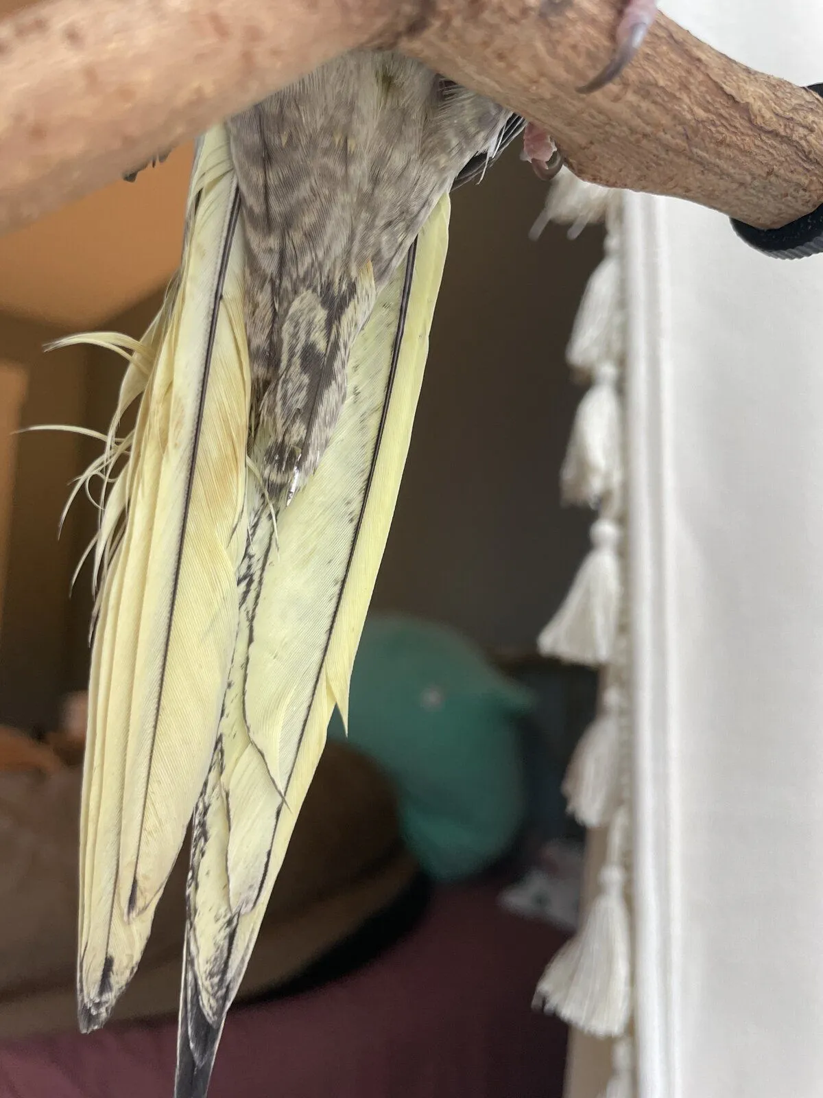 Check out what my tiel looked like when I got him... Grey face and see that tail pattern, it was all underneath as well. Both shop owner and myself thought it was a female but we were wrong.