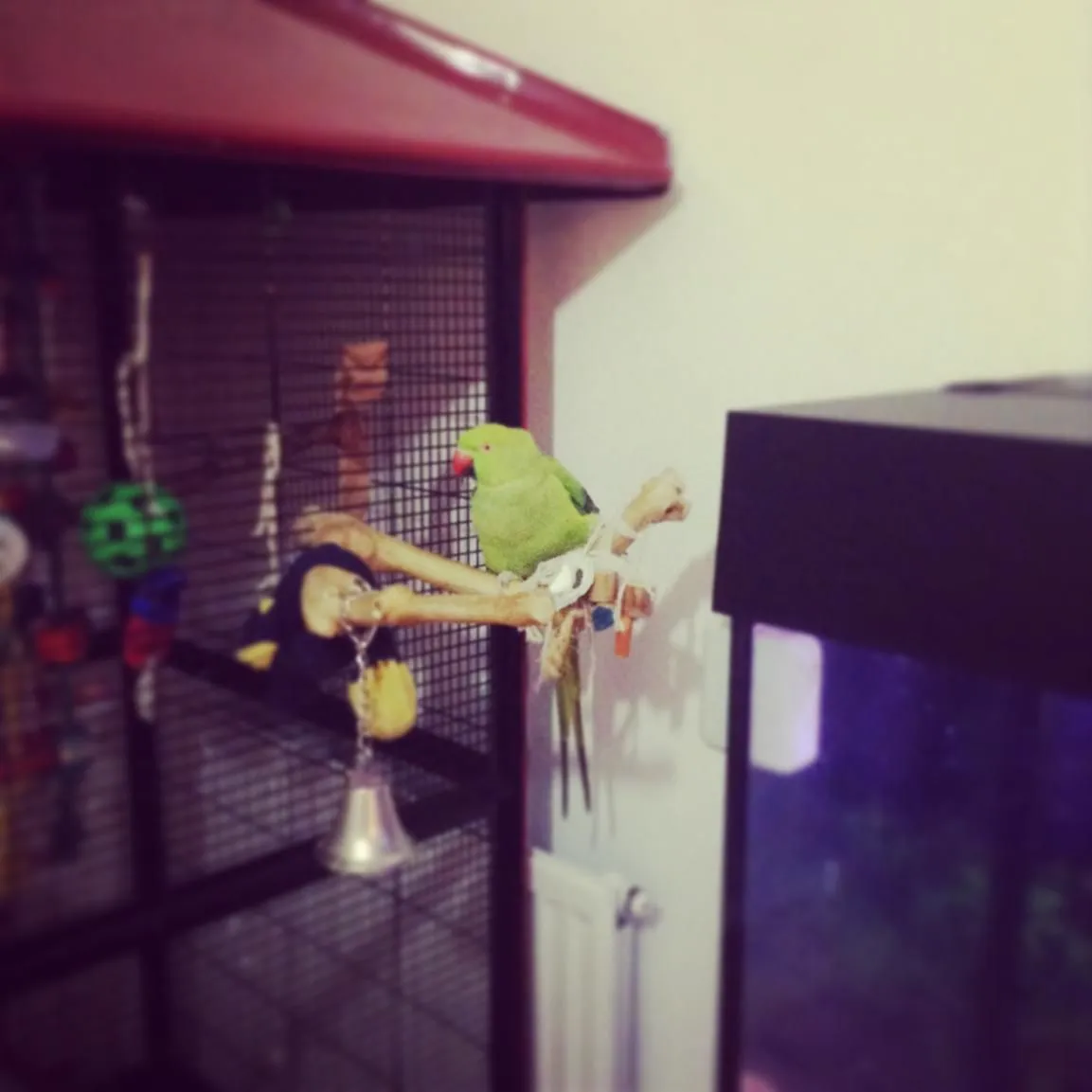 And now a year on we have got over her shyness with people and noises also her weight and health. Her wing is still not coming back 100% but she can get some lift. She went from a quite bird scared to make a noise to being a lively signing bird. She will now happily sit on her perch on the outside of the cage and play with her toys.