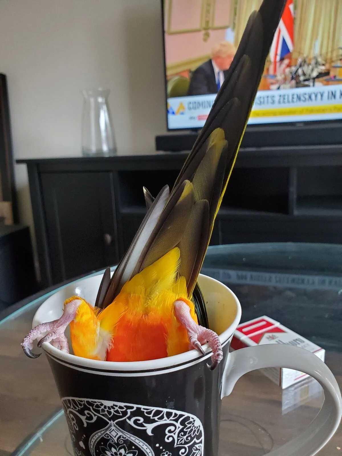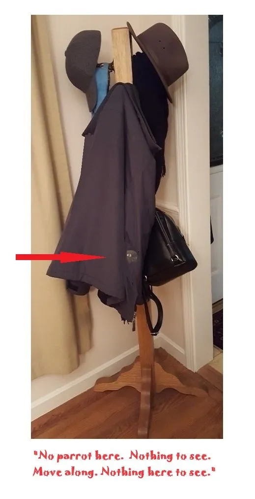 Well, the Rb and I will go with this bit of silliness. He loves to hide in the hat tree stand... does it at least once a week and is SHOCKED when he is quickly discovered. I usually let him "hide" for a while but eventually he has to come out. He is absolutely still, maintaining his pose even after being poked and having his beakie tapped. He has to be physically pried out, wing by wing, pink foot by pink foot, all the while remaining stubbornly rigid, UNCHARACTERISTICALLY SILENT, keeping the deception to the last. Now that's SILLY!