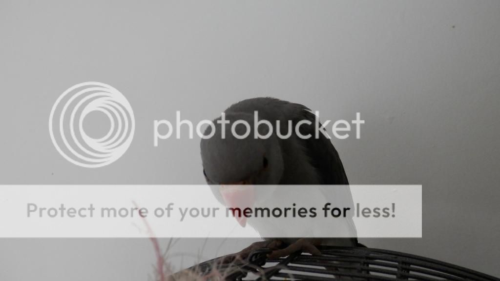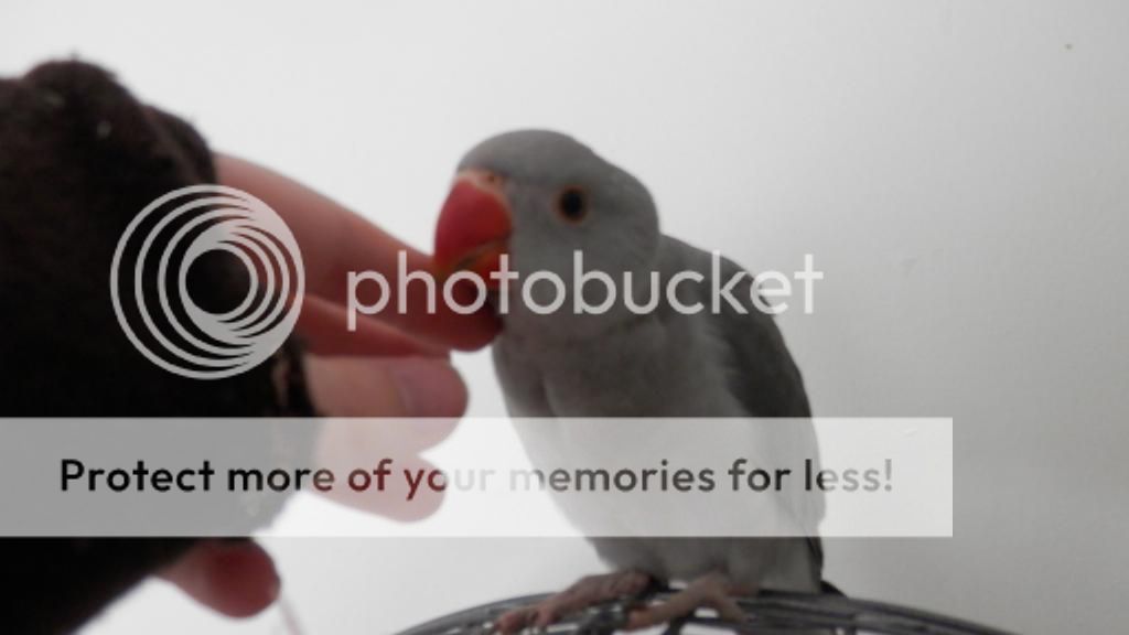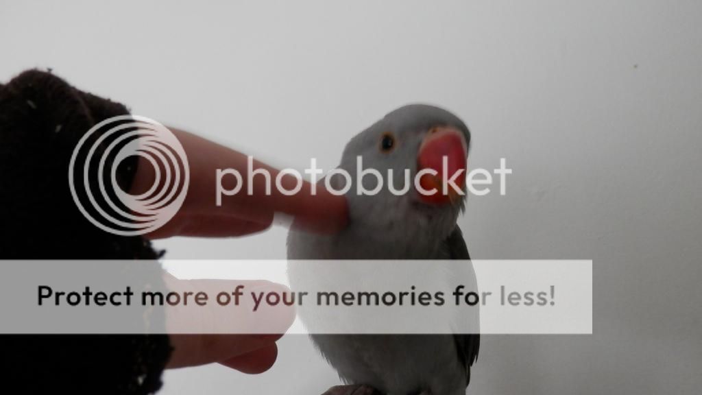 He is a grey Indian Ringneck. I just got him today. He/she (hopefully he) is about ten weeks old and very tame. He loves head scratches and he is very affectionate. He is already learning to turn around and he steps up and down well. He is very well socialized, I can spread his wings out and pick him up and he doesn't mind. Here are some pictures.