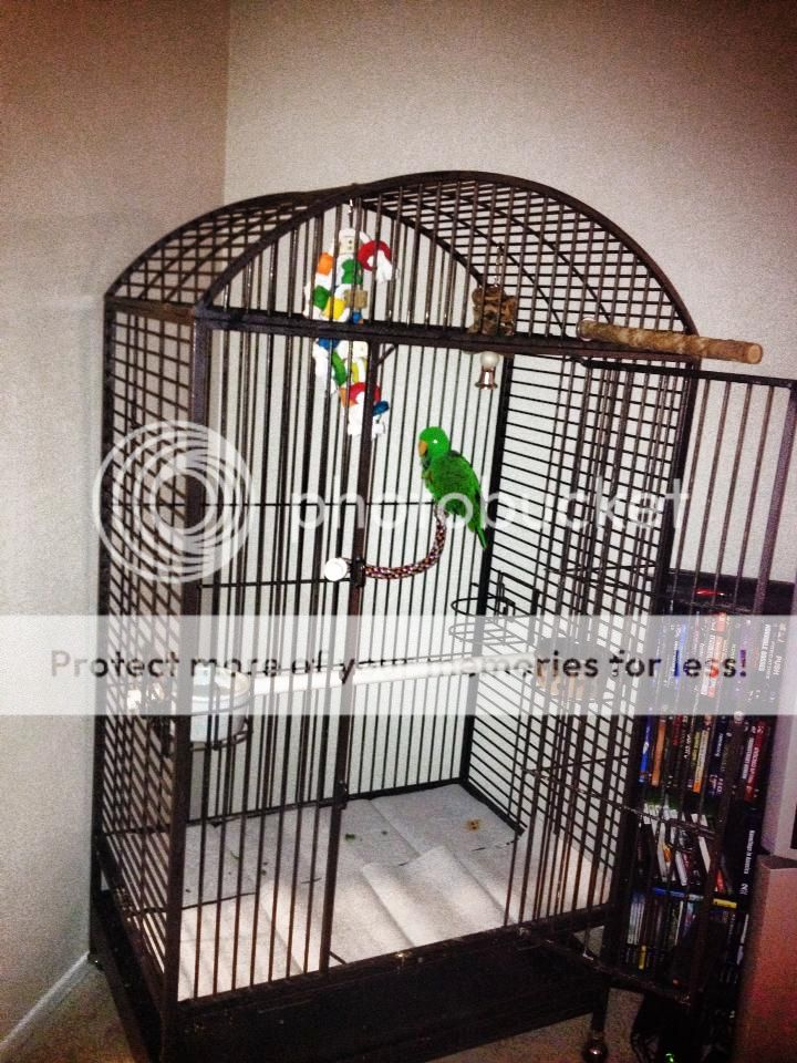 Anyway the only perches that came with it are made out of PVC pipe so they're really slick. After we eat dinner we'll be making a trip to get new perches and toys