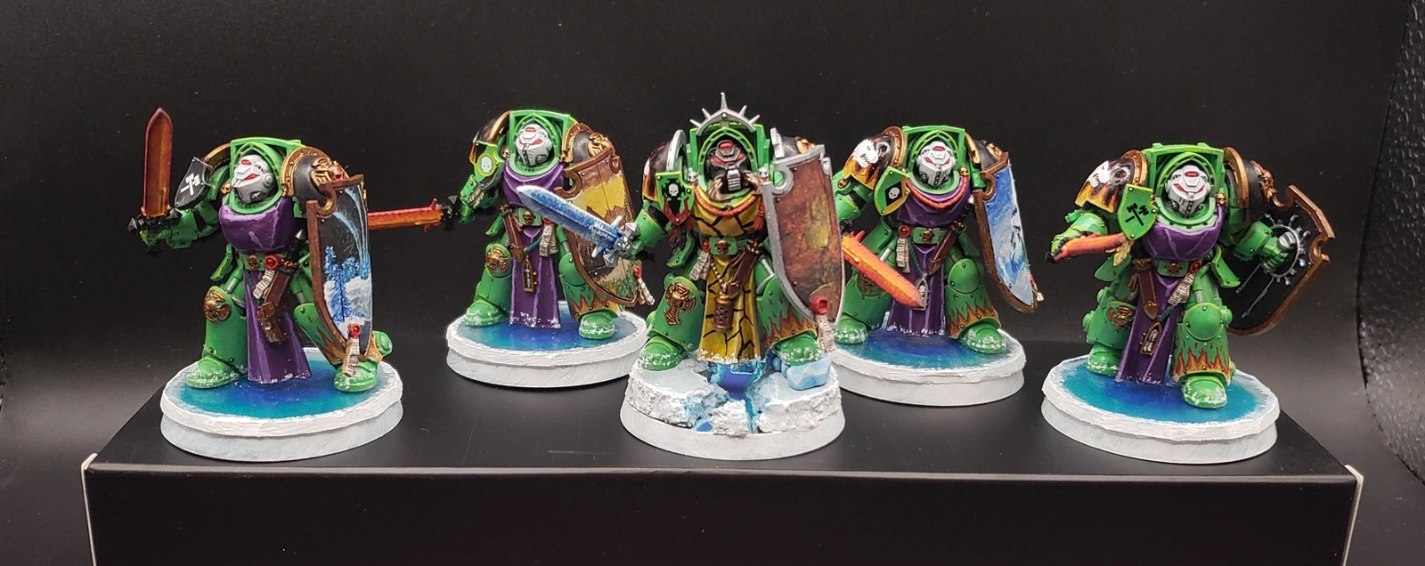 Last one I finished on the 31st! This was a Christmas gift and I did a lot of prep work in order to do what I had in mind with them. Anyway, here they are with some very fancy free-handed shields.