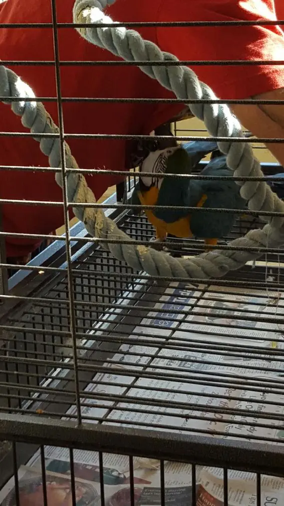 Now, the issue I am having is he has to be up my butt constantly. Do you know how hard it is to clean a Mac sized cage when the resident keeps climbing all over you and preening your arm pit hairs. lol