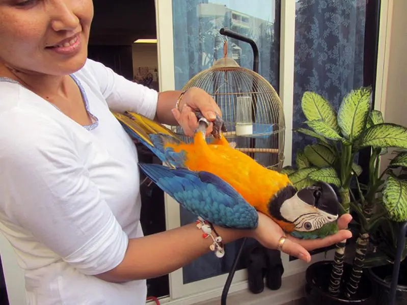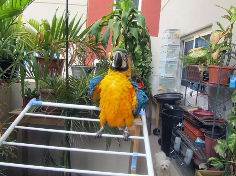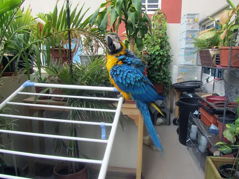 I was going to add that by the looks of your birds tail feather length he appears to be closer to 3-4 months old. In fact, my baby macaw is 12 weeks old and has about the same tail growth. In that case, I would be feeding him up to 90cc per feeding (3 times a day) if he will take that much. Slowly, I would cut down the mid-day feeding amount if he eats on his own during the day, but continue to feed the most at night. I would also start giving him vegetables (corn, peas, beans) and nuts. When buying nuts, buy them in the shell and crack them a bit for him, then he can play with the nut and learn to get the meat out. As long as your bird does not throw up the hand-feeding food and he is willingly bobbing for it, you will not be over-feeding him. Also don't let him have the apple seeds when you give him apple. The more energy he gains from being hand-fed the more he will want to eat on his own 100%, so your right, keep hand feeding till he refuses.