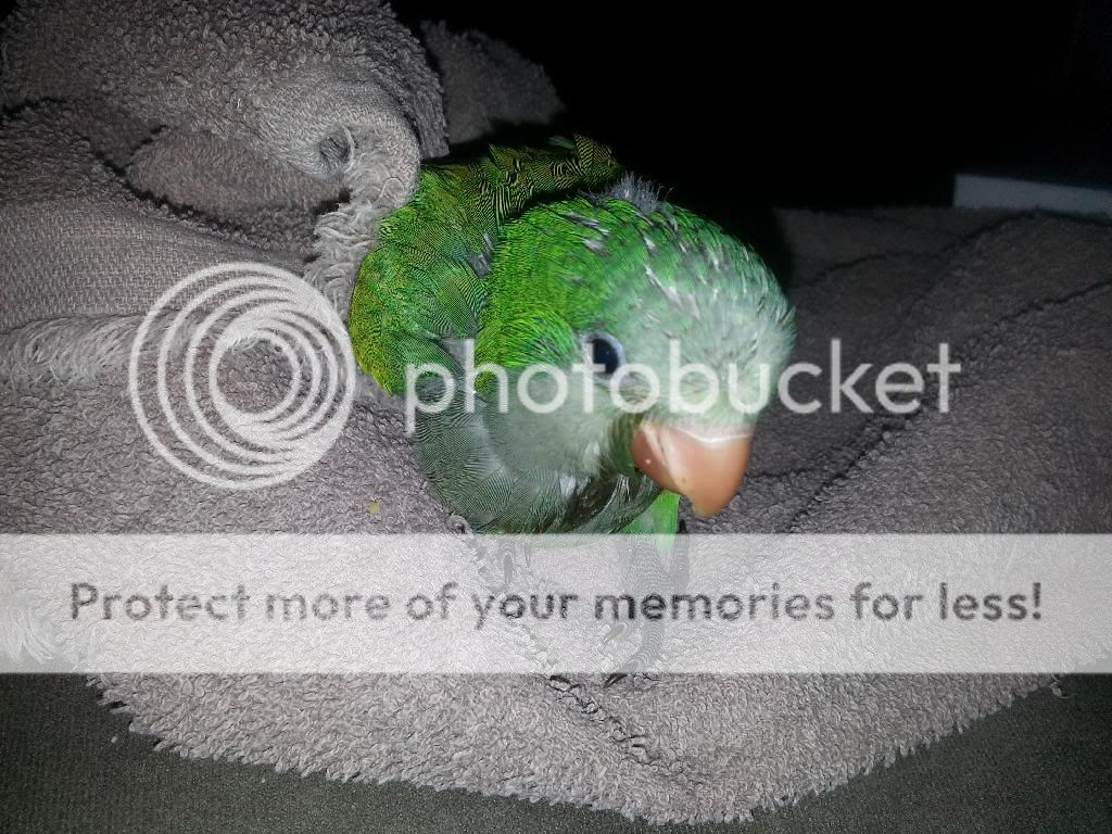 hi my name is Jessica I am new to the fourm. I just got a baby quaker and the lady said it was two weeks. But my friend who is a breeder and also my cousin said its 5 weeks or more. Its on 3 hand feedings a day but pecking trying to eat everything and past the eat then sleep stage. I put in a seed bar and it loves it. Its trying hard to fly but cannot ballence for perching. I have it in a 5 gallon aquarium with a mirror and a stuffed animal that it snuggles qith. I think im doing everything right. Its cage is huge 5 feet tall and I made a play tree out of grapevine for it when its older =) so excited cant wait tell its a little older and can play =)