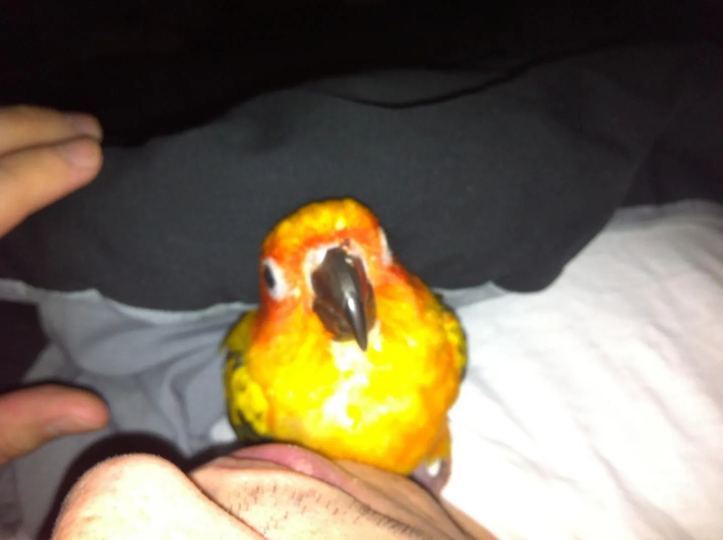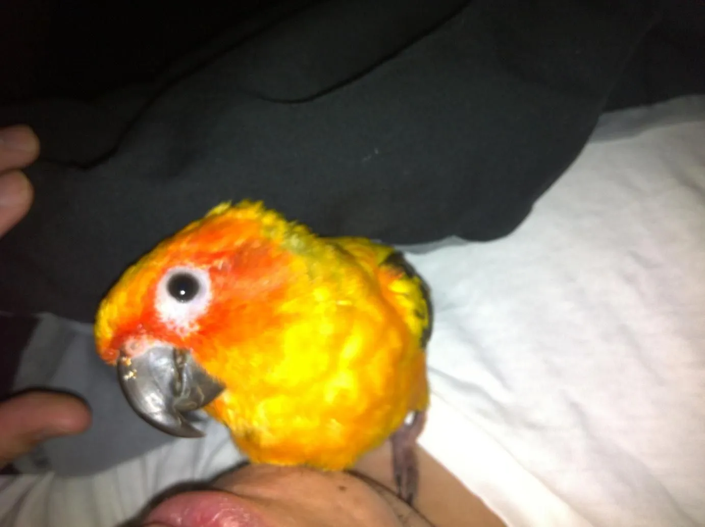 Hello guys. When I came home from work, my conure Boomer had dried up blood by his right nare. I don't know how he got it. Could he have scratched it with his nails? I sometimes see him picking or scratching his nares. He appears like his normal self and is eating.