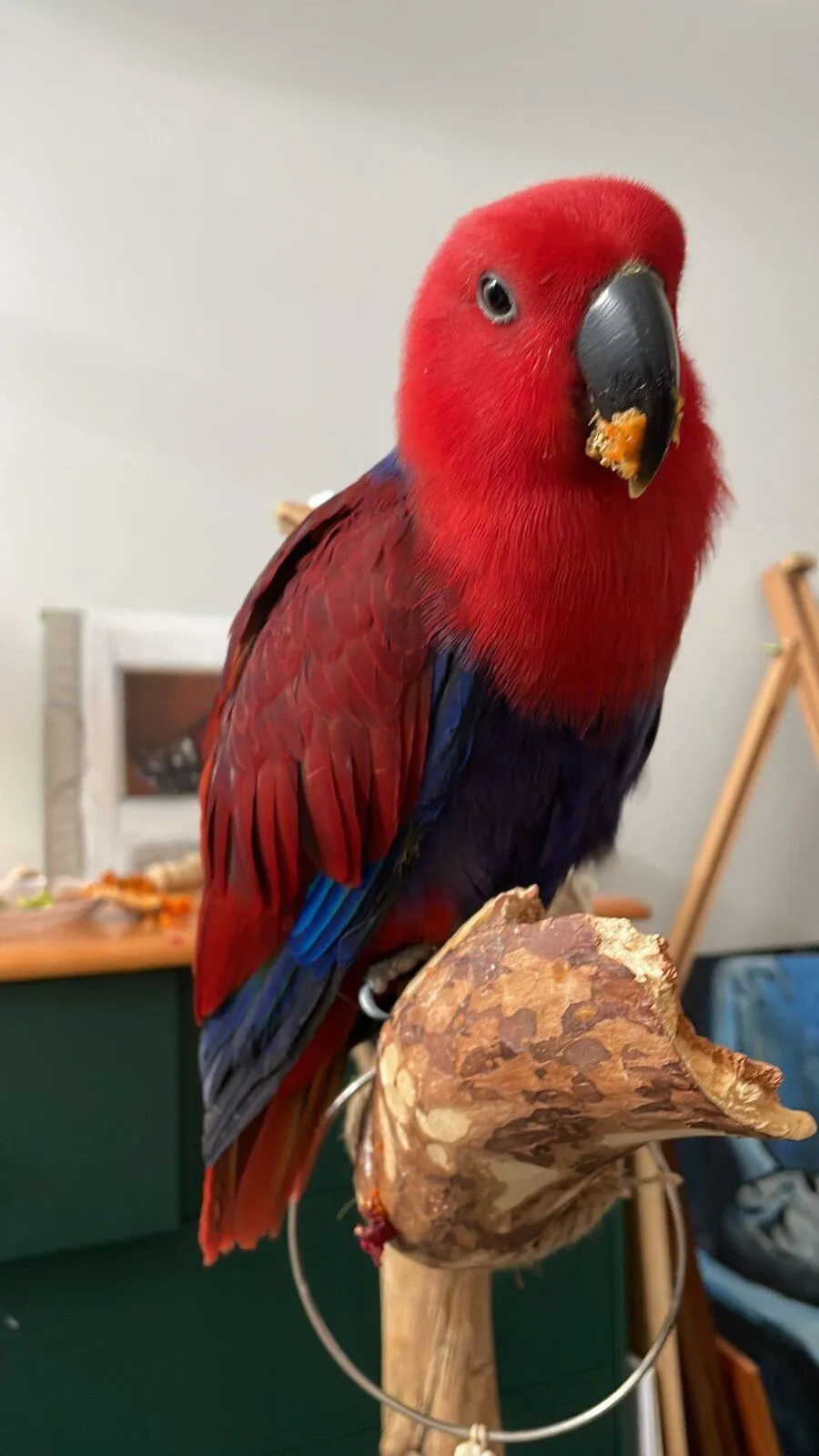 My/my mum's Eclectus is a 9 year old female who we hand raised from quite young; she didn't eve have all her feathers yet. And I've been looking after her for the last couple of week while my mum's been away. These last few days she's been making noises that remind me quite a bit of the calls she made as a baby, and I'd really appreciate any insight into what it means.