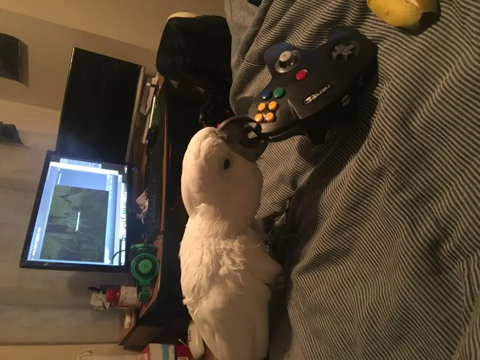 This happened on 5/30/17, so it is very recently. I worked from 7AM - 3PM. When I got home around 3:40PM, he was excited to see me. My Grandmother told me that he didn't talk and he was in his cage (opened) with music playing all day. He played with some toys, but for the most part he was quiet and calm in his cage. When he saw me, he started to talk, his crest went up and seemed happy. For 2 hours, I took him into my room and we played and it was fun! We played tug of war, peek-a-boo, and had some cuddle time, but I kept it to a minimum. I made games a priority. I would also take my pillows and lightly surround him with them as he would let out a muffled "Peek-a-Boo" which I thought was cute.