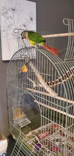 I do have experience in raising several species of birds but when they passed away (due to age) I was heart broken everytime and kept saying, I will never do this to myself again but I am a sucker for animals and I keep falling in love with another baby (regardless of age) every time I see them. However, today, I had a calling to visit my local chain pet store as I was driving to get essentials for my new home. I usually stray away because I want to take every one of their babies, all species, home. Gets me EVERY time. I happened to walk by a green cheek conure this day. I actually wasn't even paying attention to him at the time but instead admiring how beautiful their finches were. Then, out of the corner of my eye, I see this little beautiful baby come out of his corner and monkey bar his way to me and start staring me up and down. I put my finger to the glass and he did the usual inspecting bite. He was not angry with me being there nor aggressive about it and he also came to me on his own. No I don't feel special because his species is a social bird and wants attention, but the unprovoked attention is what got me. I spoke to him through the glass and used my facial expressions (which I believe "parrots" learn). I left the store and I just could not get this little guy off my mind. Husband said, "Animals bring you so much joy. So if you feel like he belongs in our family, we will go back." Now again, I am experienced in birds but I have never owned a conure or parrot. I researched and researched and determined that I could in fact provide what he needs but was still undecided if I was willling to commit to the longevity in which I knew my heart would break even more. I will not lie, I have not owned a conure so I'm new here. However, I did know that I could love him and provide. I left the store, as I said, with a heavy heart that he did not belong in that place and he needed his forever home and it was with us. I have 4 children and a spouse and we love on EVERY animal we own or have owned just as they are a part of the family. I bought stuff for him before I even decided if I was going to bring him home. I spent several hours doing more research and talking with the husband and we heavily went over the cons as I do with every animal I bring into my home. I went back to the pet store and I just walked passed his cage as if I was just shopping, and I could see him out of the corner of my eye jump down from his perch and give me the, "Get me the hell out of here look." OK, you are coming home with me I said lol. As I was picking out more toys and such, I told my husband to hurry and get someone before someone else decided they wanted him. I hated that they used a device to capture him. I thought for sure I'm going to get this traumatized, attack bird. So I sign the papers and I leave with him and his new environment, toys, temporary food (I plan to purchase a more natural pellet), and everything else he would need to get him through the first night. As I mentioned, I am in the process of moving so as I'm preparing my new home, I have to drive to pick up my kids whom I'm letting finish out the school year in their current school which is about an hour drive. So as we are driving, I'm peeking into his little transport box and I can't stand that he is alone and scared. Now everything I've read up until this point has told me, don't touch them, let them explore their new cage and environment first or you will stress them out way too much. But me being me and as scared as I was to get bit for about the millionth time but by a harder biting bird, I opened the box. He immediately climbed to the top. I didn't attempt to touch or pick him up. I just let him explore as he felt comfortable. 15 min into our car ride, he finally climbed out and onto my shoulder. I was shocked but mostly scared he would attack or bite because he was scared and stressed. I remained calm but kept my face turned away while speaking softly. Fast forward about 45 min and he was already comfortable with his papa (my husband) and all of our kids. He was given the option to choose who he went to and when. He spent the last 15 min of the car ride with the kids after hopping back there himself. I manage to get him back into the box as we arrived at the new house but he was not happy about it. I get him in the door and into a safe, quiet room and he climbs right out and onto my shoulder again. I am shocked at this point. Everything I've researched or have been told is that I would have to gain this birds trust over time but he has fit right into our cooky family and has already been dancing with the kids to music etc. Takes food right out of our hands, climbs on us, wants to play in water, all of it. But here is my concern. He WILL NOT go to bed without one of us present. I have put the blanket over the cage, put him in a quiet dark room, provided a hanging bed for him to sleep in, provided food and water, played soft music, etc. But if I leave the room, he screams. I know it is his first night but I do not want to develop this habit or encourage it. Yes I do know they are loud and will be when they want and that is not what bothers me. I'm concerned he will not get the required amount of sleep he needs. It's like having a new born baby again lol. My son and I bathed him and wrapped him in a warm towel and spoke softly and kind of treated him as you would a baby you are trying to get to bed and that seemed to calm him for an hour or so but then he wakes up screaming and the only way he will stop is if someone comes and sits with him. Is this just a temporary thing because he is scared? Are there any tips/tricks I could try? I'll do whatever it takes because they said he was already returned once and that just broke my heart for him even more. I'm not willing to give up on him. I just need to learn his personality but I don't think this will be healthy for him in the long run. He has his first vet check Monday. Hopefully we wil