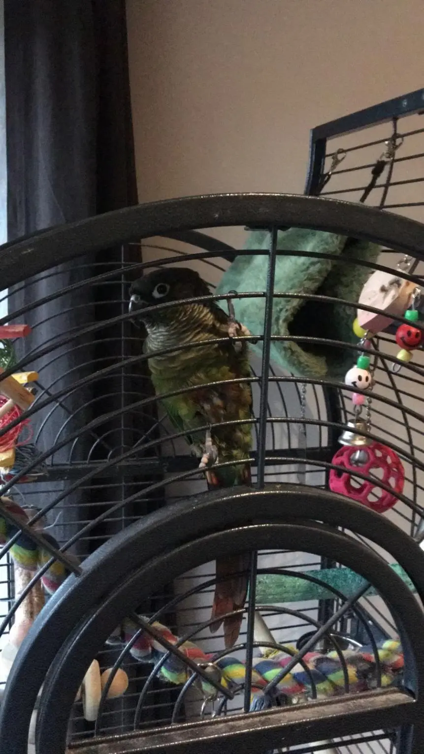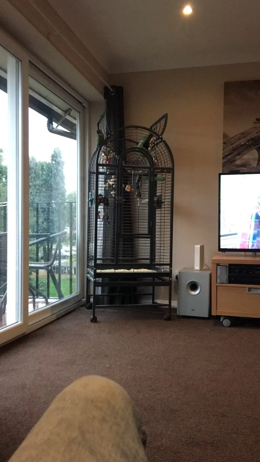 Darcy bonded with me when I was living at home so when we got him to our flat he was quite chilled with the new environment. His diet is quite varied he could do with more veg but haven't got round to it yet. But a couple of days in he seems to be grooming himself and pulling feathers from under his wing. There only small feathers but I am a little worried. Note his cage has never changed so his home has moved with him.