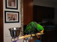 I have gotten numerous updates on Mac, for the first week, it was a might tough to read the emails and view the videos and pictures of Mac with his new family. But now it's getting a bit easier to accept. He seems very happy as do his new owners. They have been able to do things with Mac that took me quite a while to do. His feathers are coming in nicely and he seems to be leaving them alone without them having to stay up with him all night.