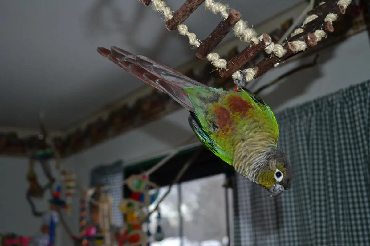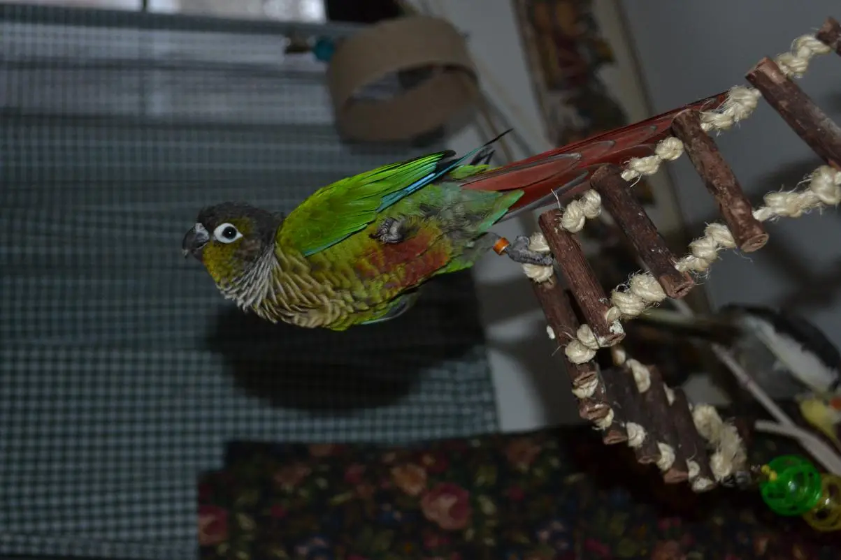 Im sure your gcc will be fine also. How long have you had him? Im glad you got him out of a small cage, green cheeks need alot of room to play. Pumpkin has this cage Petco Designer Mink Brown Standing Parrot Cage - Parrot Play Top Bird Cage from petco.com and uses every single inch of it plus the playtop. They really do need alot of room, so good for you!