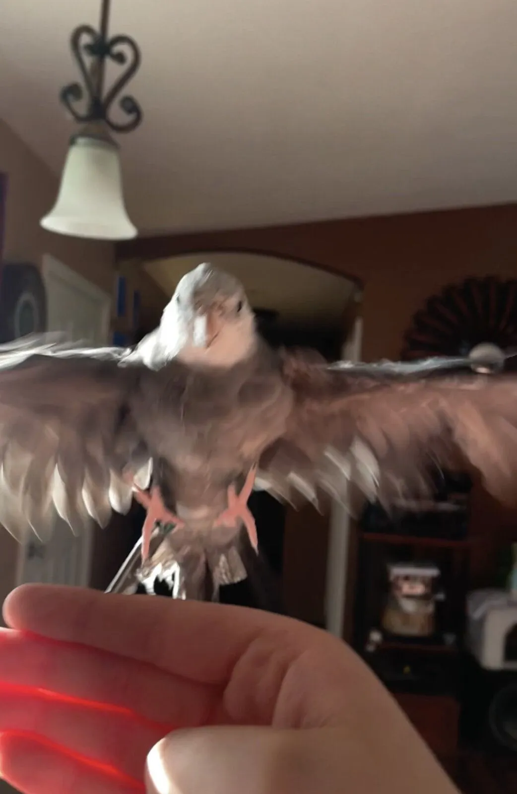 he poops a lot, he has wings, he's little, he is like a rat from NY, always trying to steal my food, and he is like a child in so many ways. thats why hes my little winged poopy rat child <3