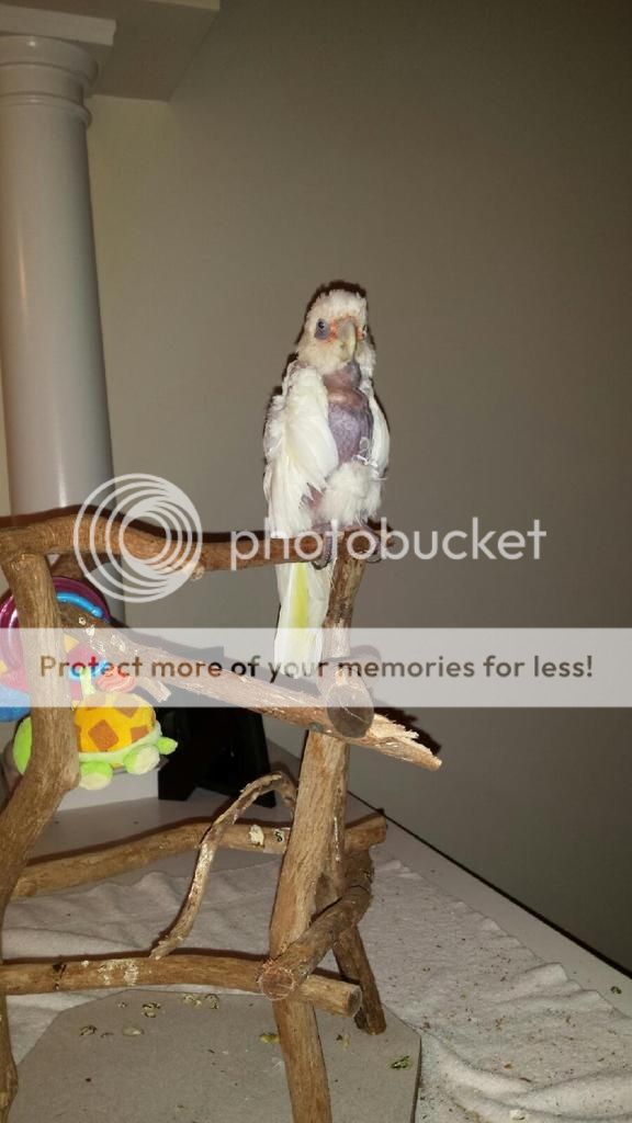 Sooo Folger as requested! He is still a little freak of nature but he did sit with me tonight for the first time in a very long time. He didn't sit with me for very long maybe five minutes before freaking and flying off. He still puts his head down and presses his cheek to mine while clicking at me when I have him on my shoulder. I'm thinking of having him out a little more often...we will see if that does more damage than not. He is a hard one to balance thats for sure!