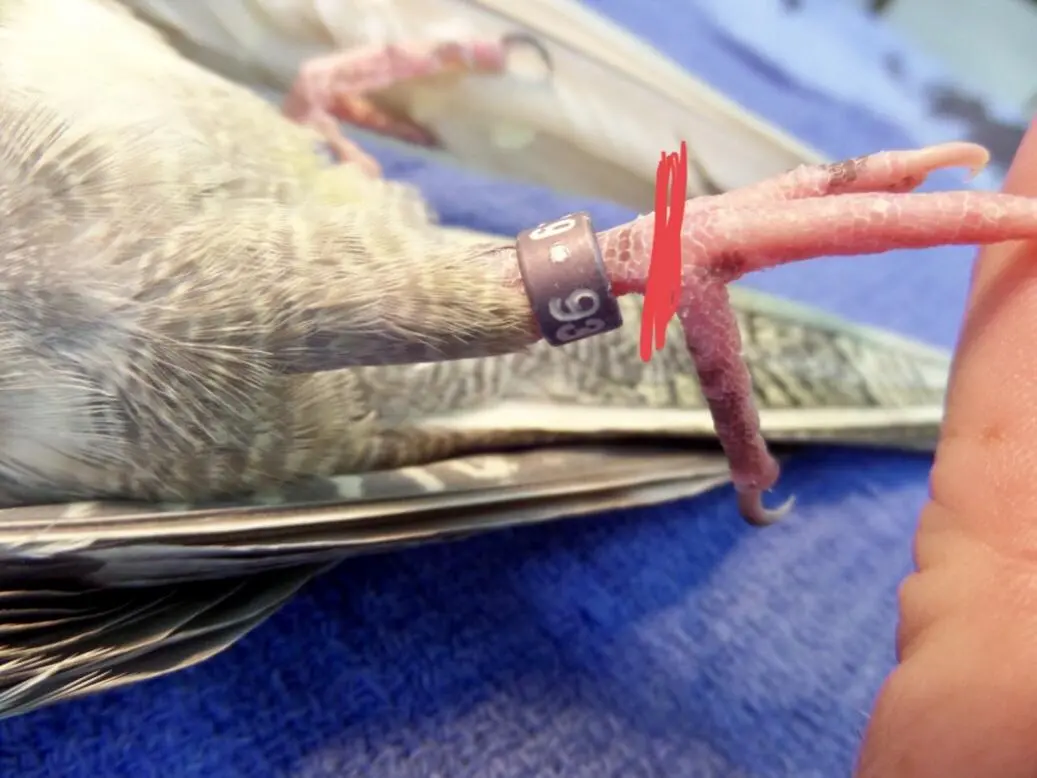 The red marking is broken. her leg moves but from the marking to feet and fingers does not move .