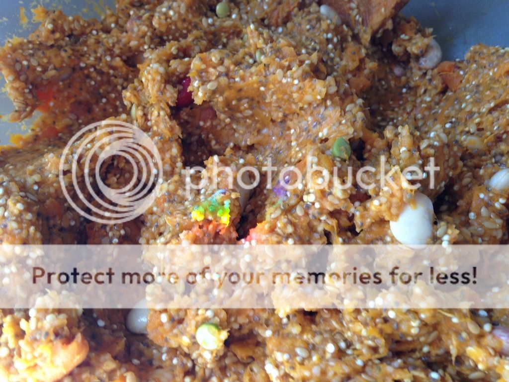 Canned pumpkin, Steamed yam, Steamed carrots, Steamed butternut squash, Couscous, Quinoa, Flaxseed, Chia seeds, Crushed almond, Crushed Brazil nuts, Soaked beans, Ginger, Oatmeal and Wildflower honey oats