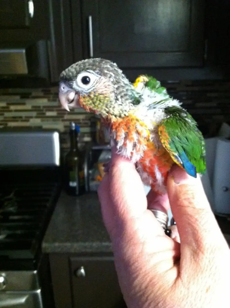 I am 25 y.o. I have wanted a bird and been doing research for well over a year. I finally settled on a green cheek conure a few months ago and refined my researching to this species at that time. Around the end of November i found a (somewhat) nearby breeder and picked out a 4 week old yellowsided baby. She sent me pictures and progress notes on him for a month until he was fully weaned then 5 days ago I was able to go meet my new child and bring him home. (I already uploaded pictures of him to my album)