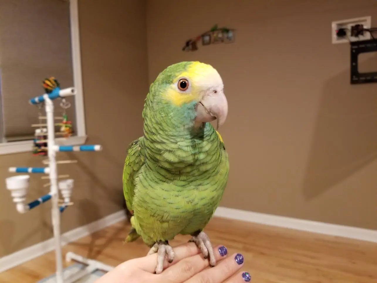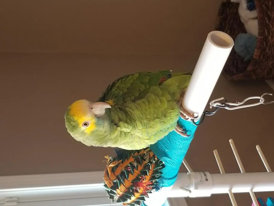 One week ago, Lucy the yellow shouldered amazon joined my life and it has been a wonderful adventure with her! I visited her three times before deciding she was "the one" and it was the best decision I have ever made. She is 6 months old so watching her learn and explore brings a lot of laughs. She seems to laugh back at me and says hello. She seems to fluff her feathers a lot and the grey feathers underneath her green seem to come out one at a time during her fluff. Is this expected to happen with a baby? Will her feathers change a bit?