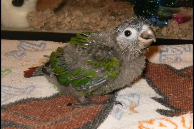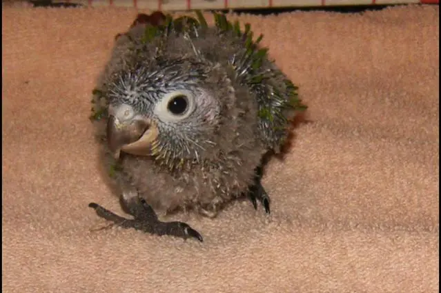 He/She is just a couple weeks old and will be dna tested very soon, I'm sort of keeping my fingers crossed for a male BUT I will be just as happy with a female. I read that most male gcc's have black feet, but I'm pretty sure this is not a 'definite' sign of gender. Either way I think he/she is just absolutely adorable lol My fiance' thinks otherwise! But thinks they are beautiful birds when grown.