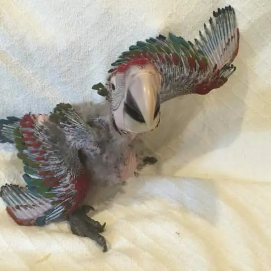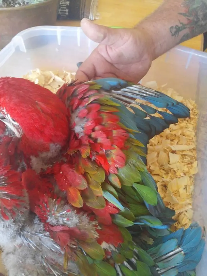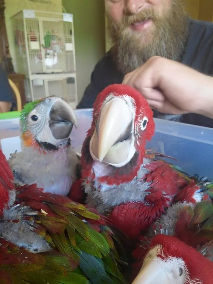 The three greenwings just kicked back and shared the attention. The breeder ended up taking her out of the box because she was being such a handful!!!