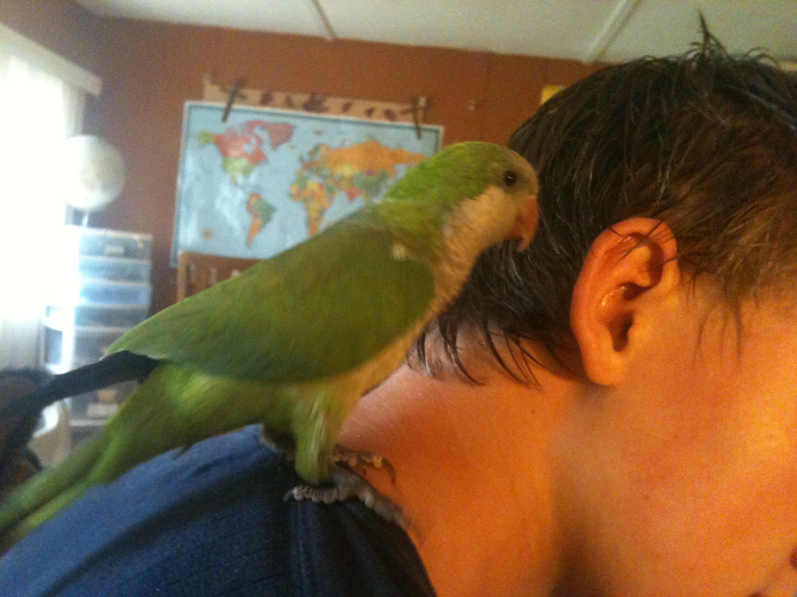 We just got a medium sized parrot from someone here in Mexico where we live (not a wild one-- it is a bred bird...)