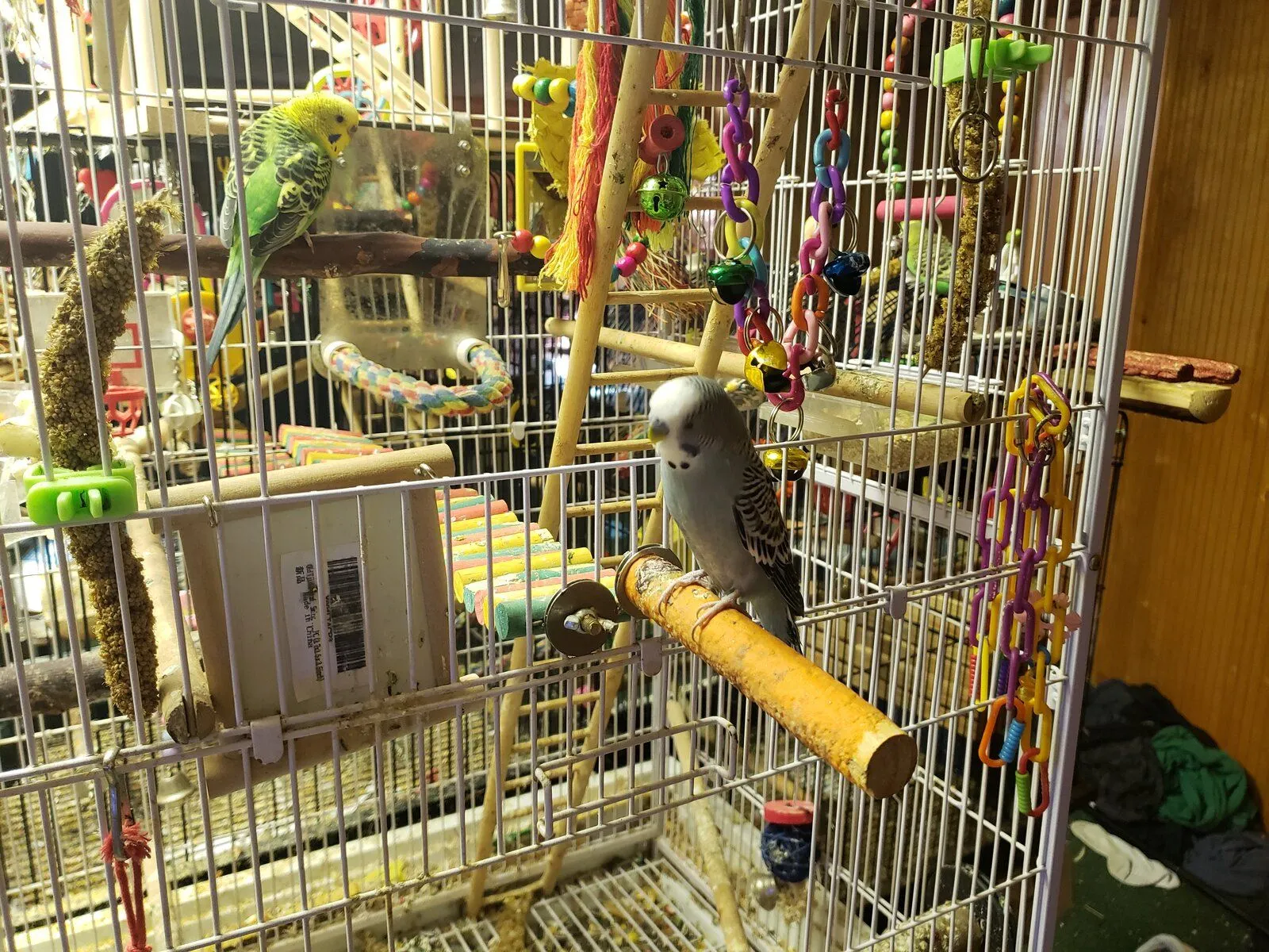 They nmed him something silly I forgot it about five seconds later but its a baby so new naming is fine... This one is kind of grey so I thought of names on way home with it, misty, cloudy, iron, ...all stupid. Then I decided, grey.....He's the machine! Machine is the new budgie in my flock.