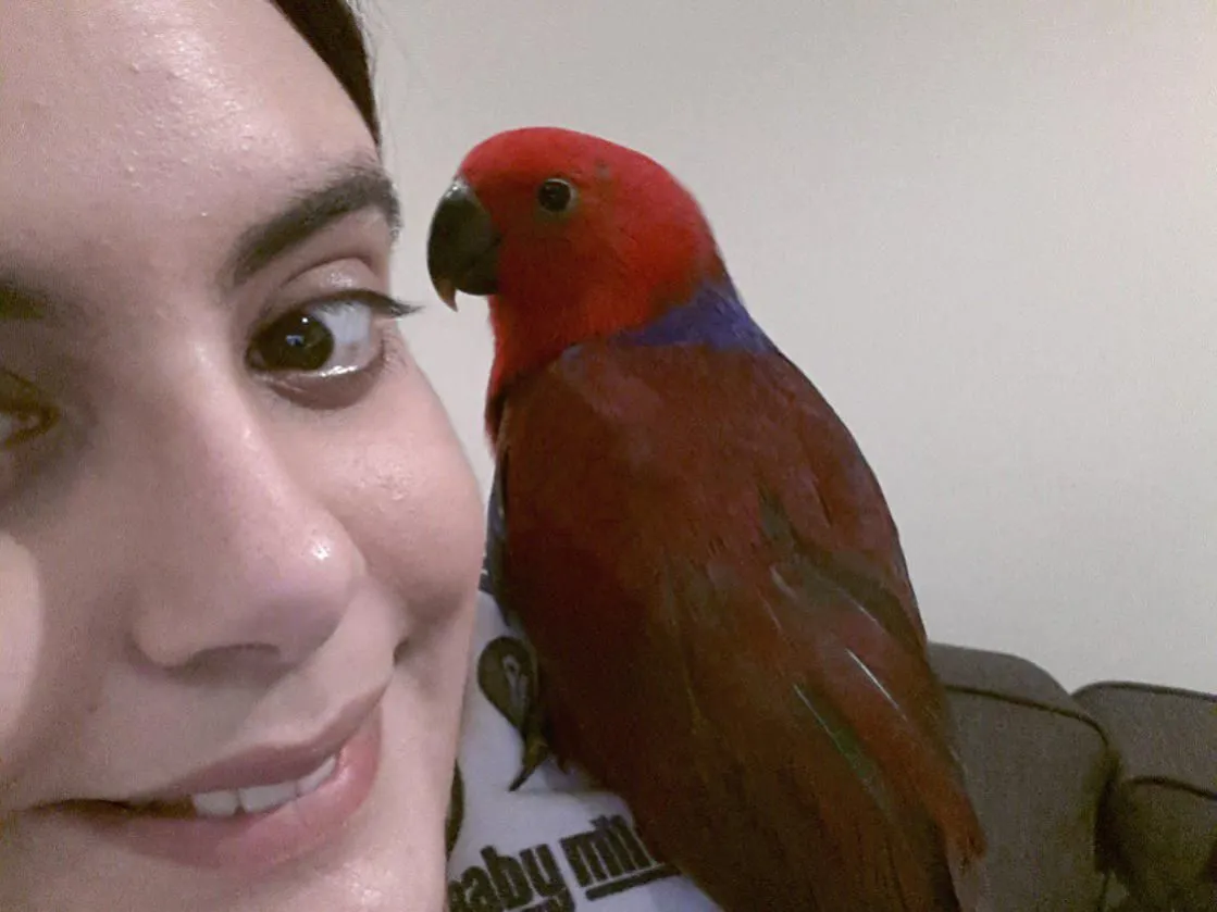 Scarlet- Gorgeous hand raised Grand Ecky hen about 12weeks old, only had her for 3days